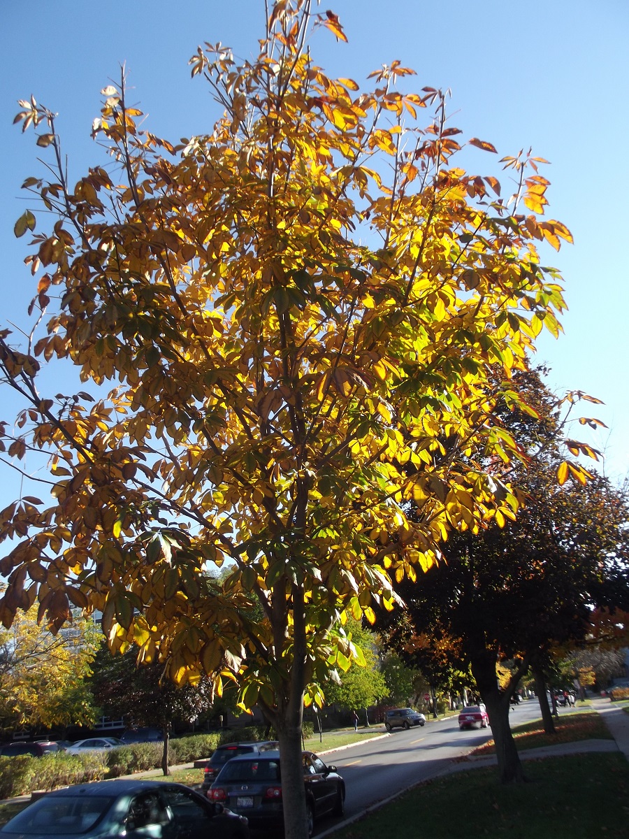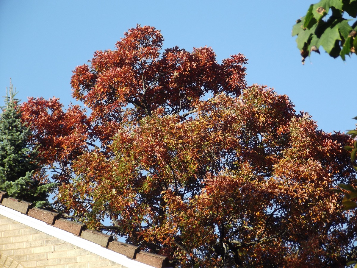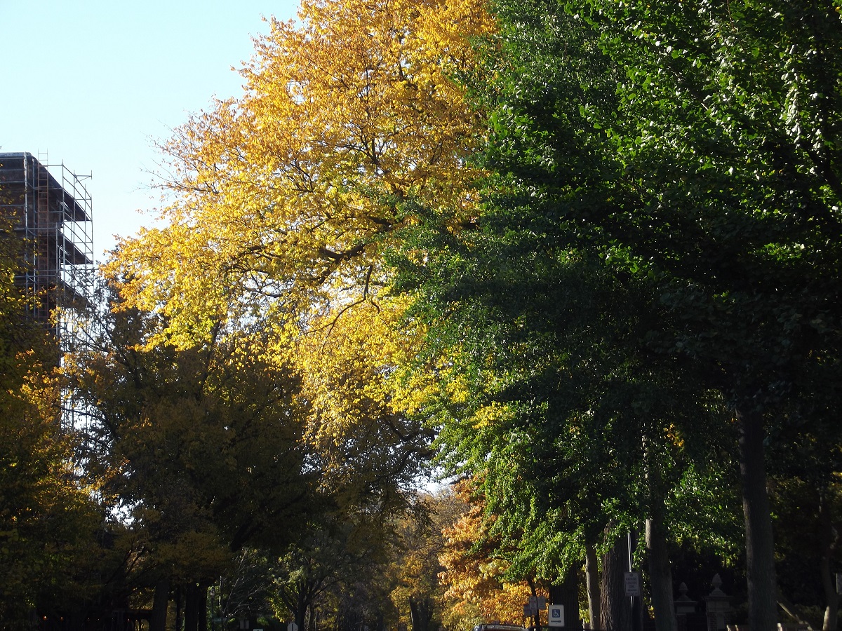Yellow tree looking north on Oak