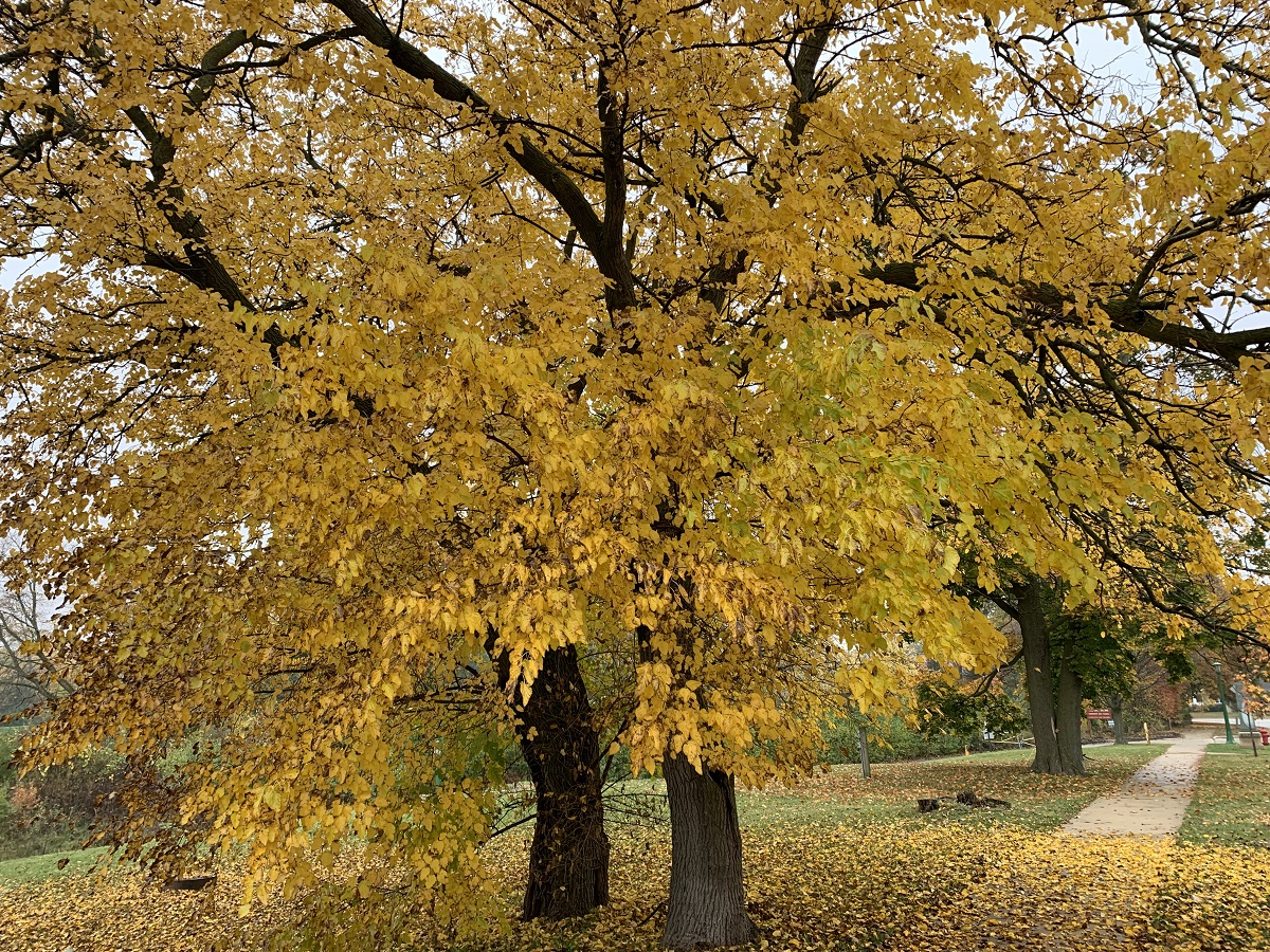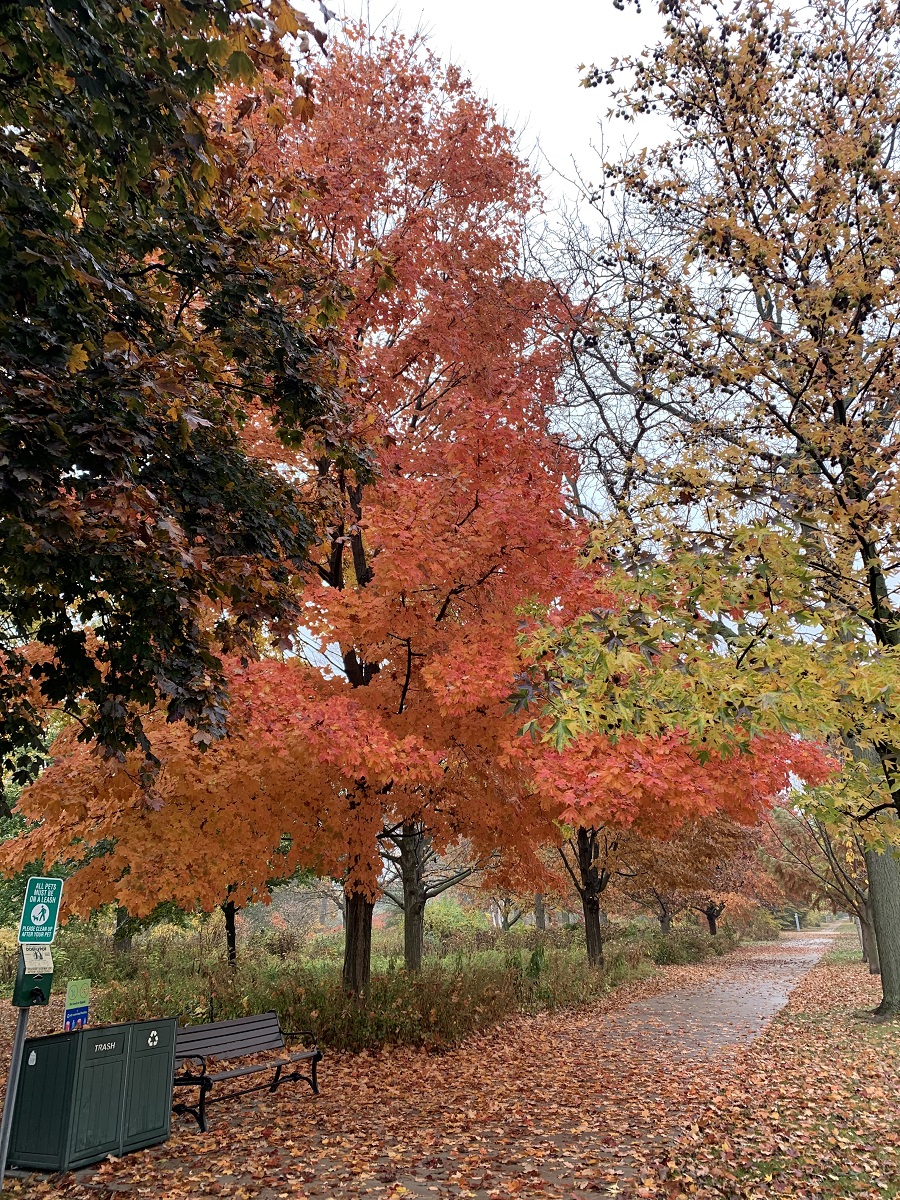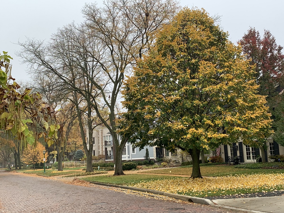Yellow and green trees on Michigan Avenue opposite Gilson Park