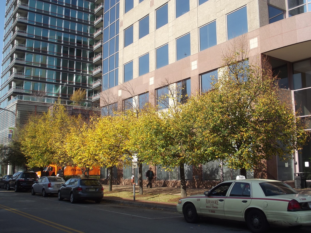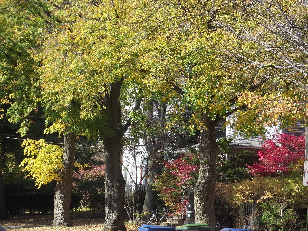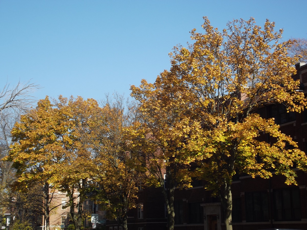 Yellow trees along Clark St. just west of Sherman Ave,