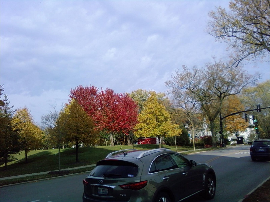 Red trees in Evanston Hospital