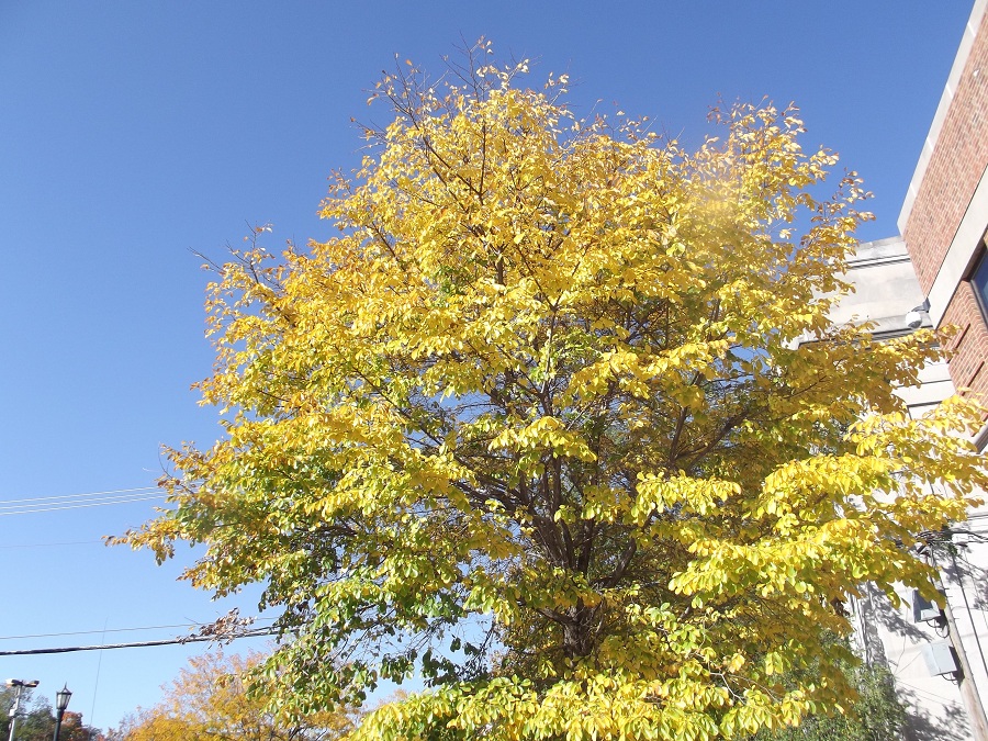 That same colorful yellow tree next to building at Maple and Lake the next morning 10/8/12