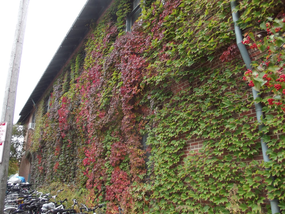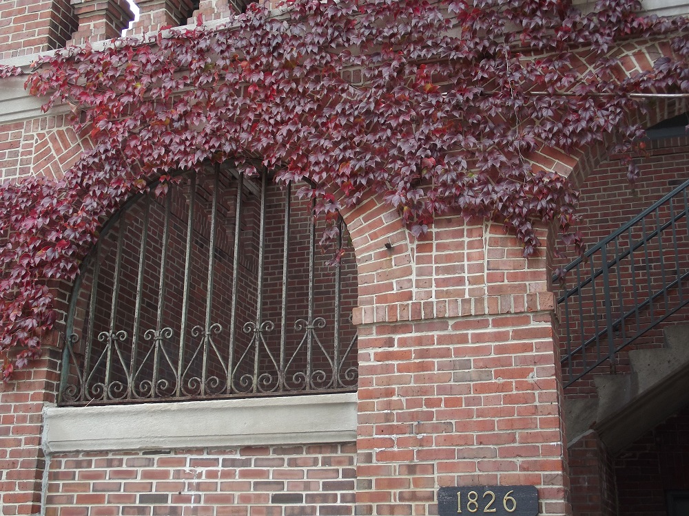 Red ivy on Central St. Evanston Metra station