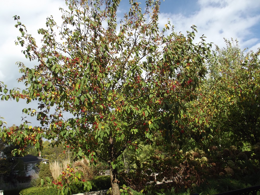 Trees with red berries east of Mather Pavilion north of Davis -- 10/19/13