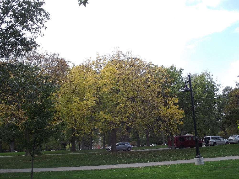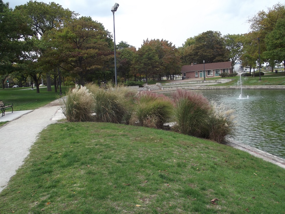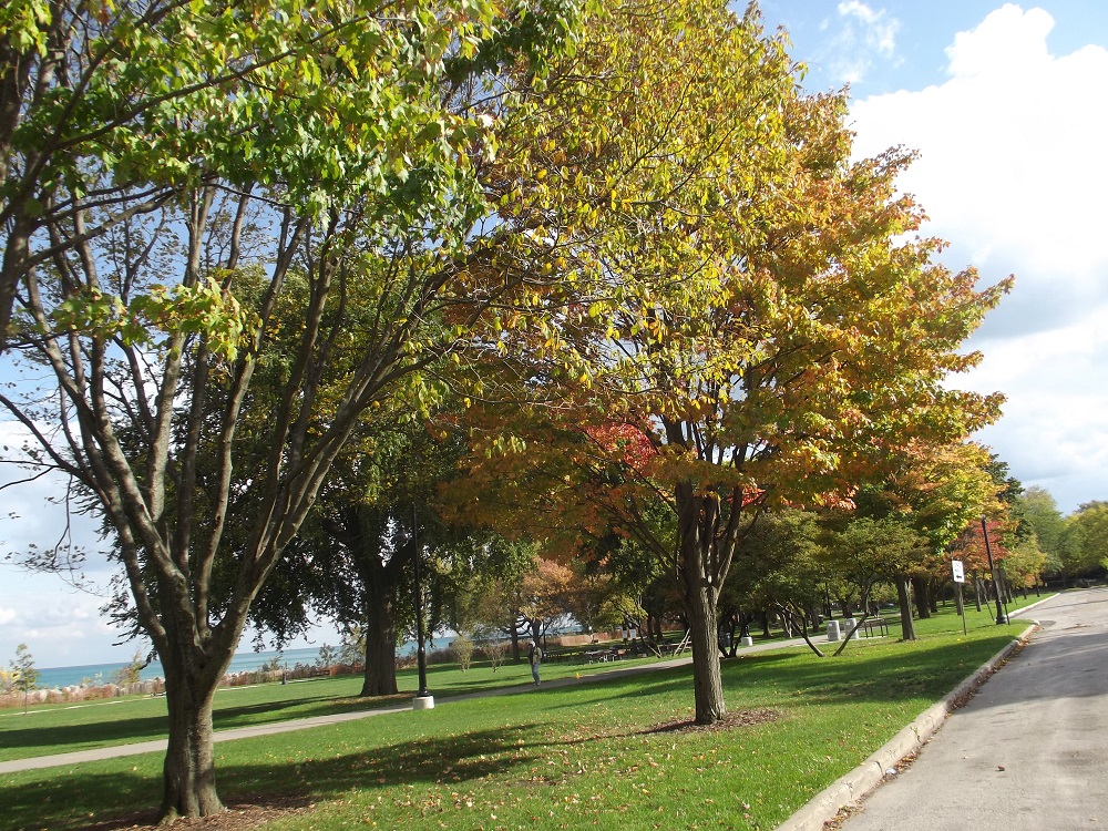 Maple trees along lakefront in Dawes Park south of lagoon