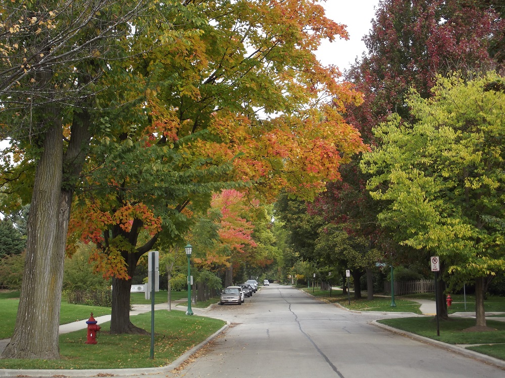 Trees walking east along Washington St. in Wilmette