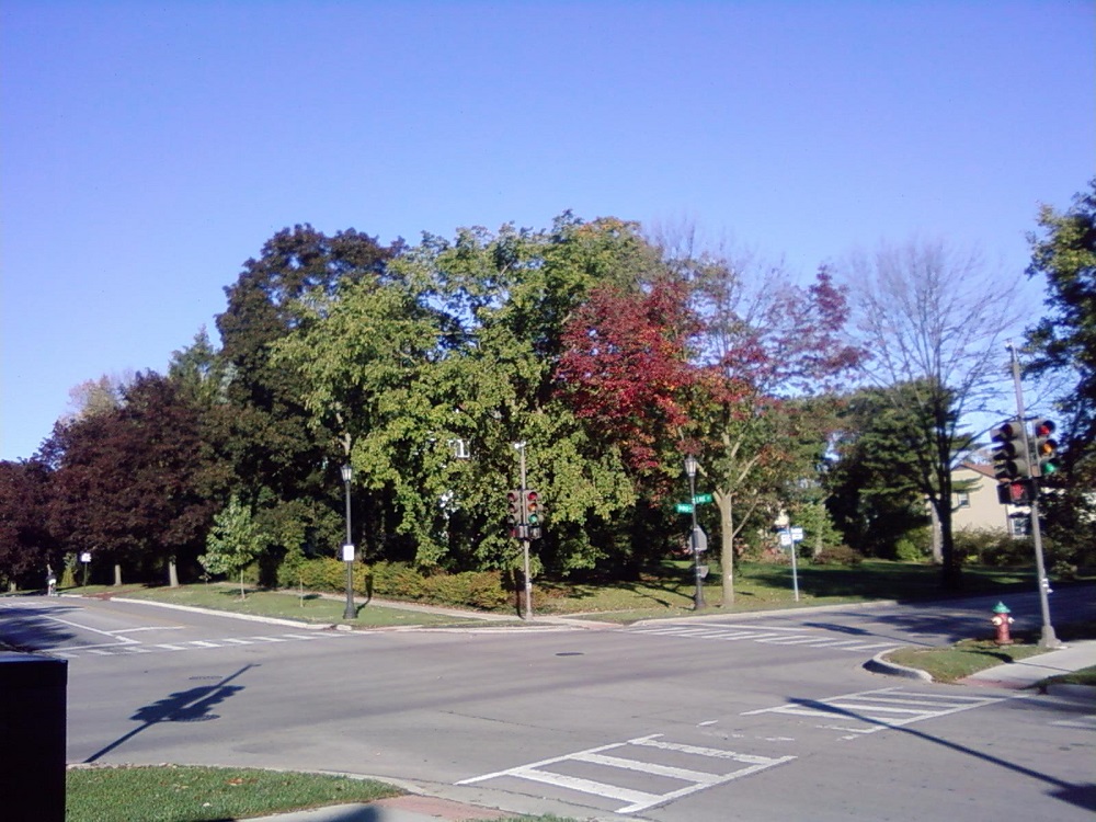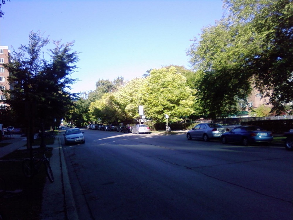 November 9, 2013 -- Taking L then walking west on Oakton to rowing center, then east on Dempster after near Unitarian Church -- clear blue sunny sky