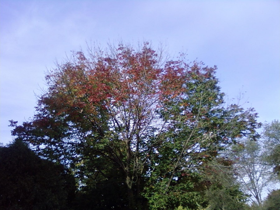 Red/yellow tree from inside UCE sanctuary -- Sunday 10/5/14