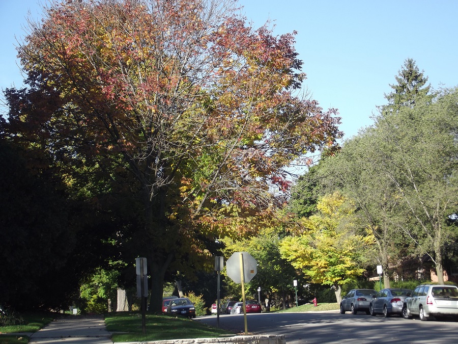 White ash tree on Greenwood just east of Metra "L" tracks -- Sunday 10/12/14