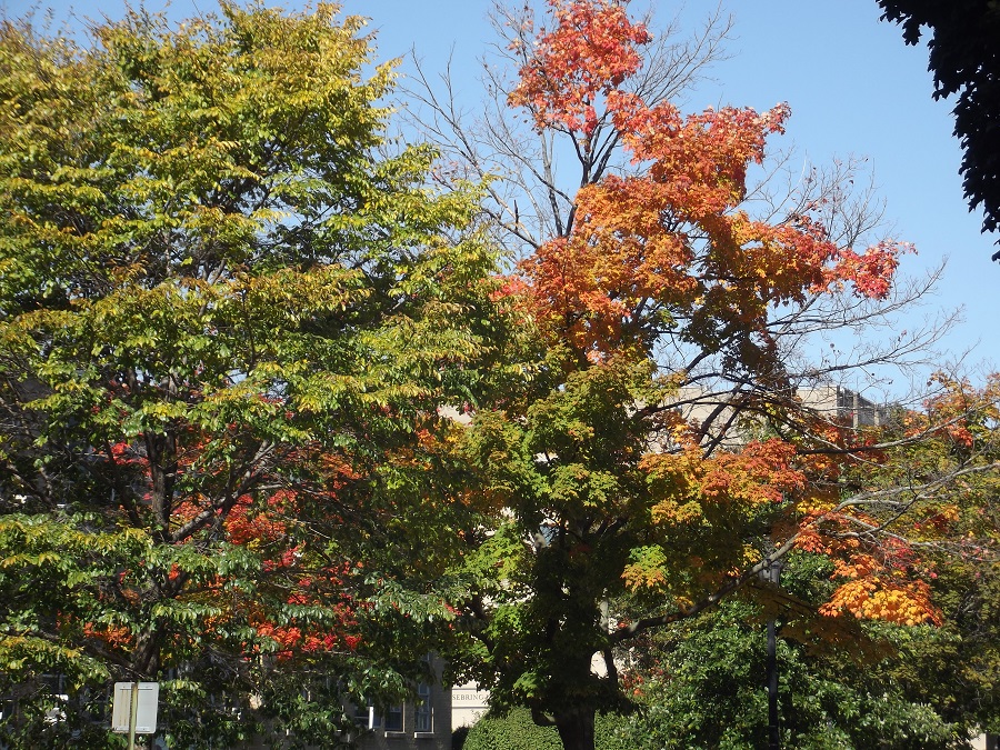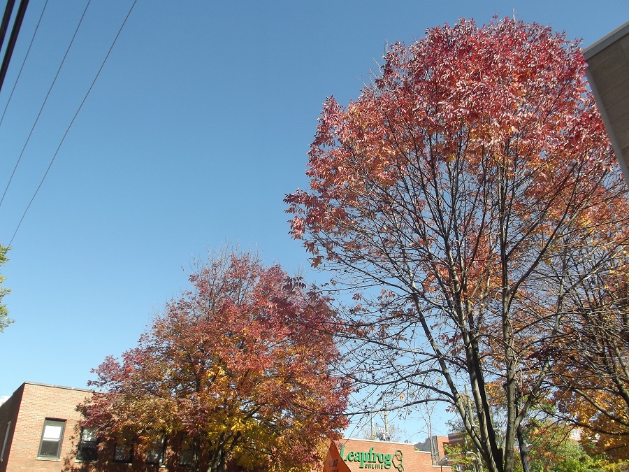 Looking west on Greenwood to white ash and ytellow trees by Unitarian Church -- Sunday 10/12/14
