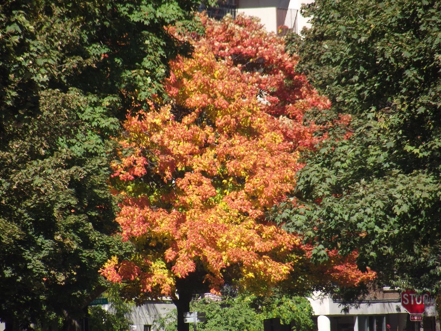 Orange maple on Greenwood east of Metra "L" tracks -- Sunday 10/12/14