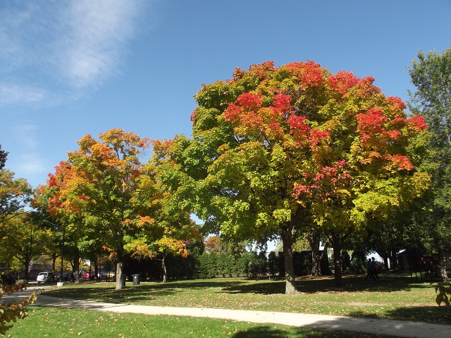 Colorful maple trees on lakefront south of Dempster -- Sunday 10/12/14