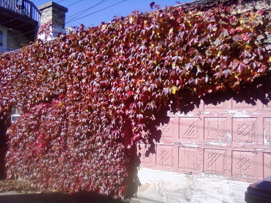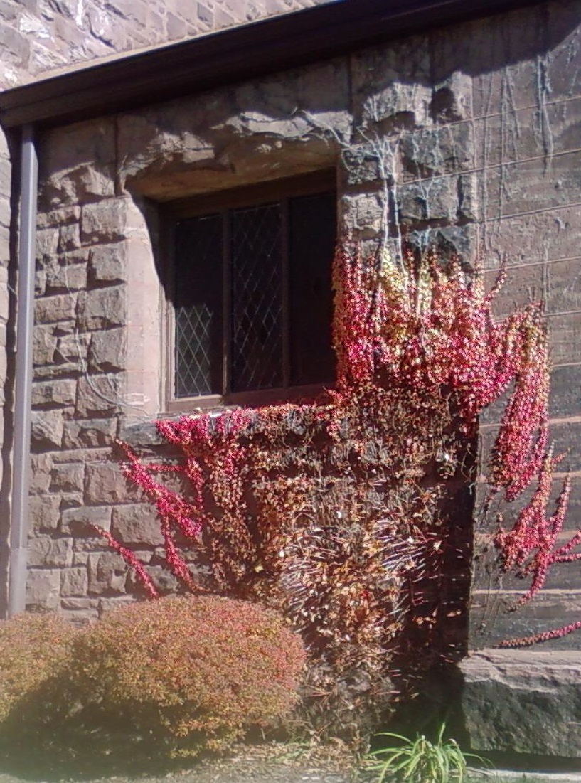 Red/purple ivy on another church -- Sunday 10/26/14