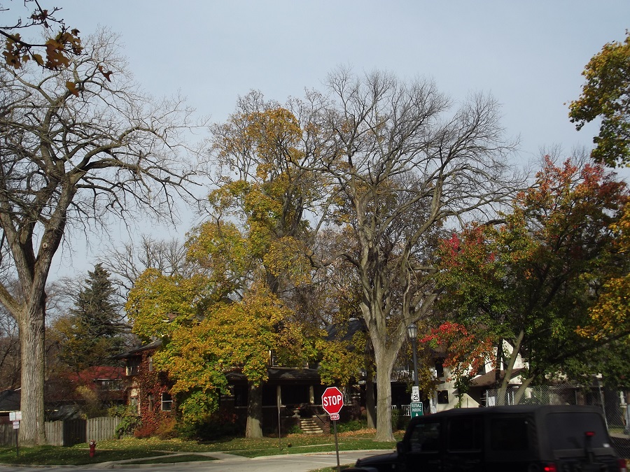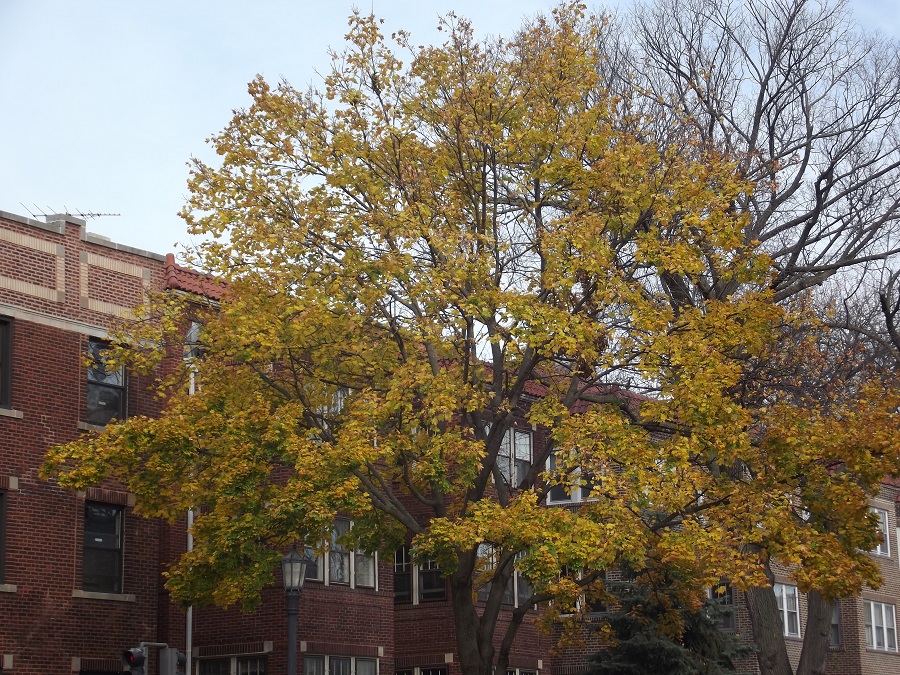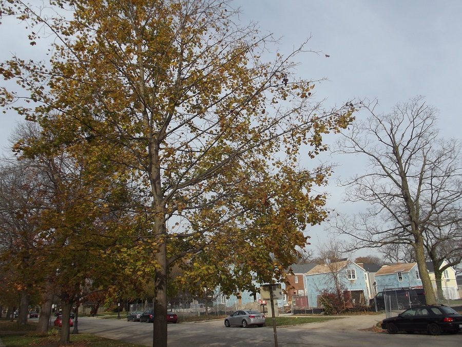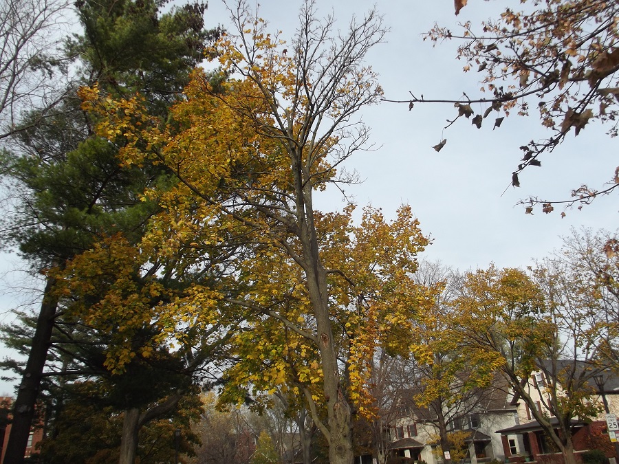 Yellow tree on Sherman showing many new houses built on former site of Kendall College -- Wednesday 11/5/14