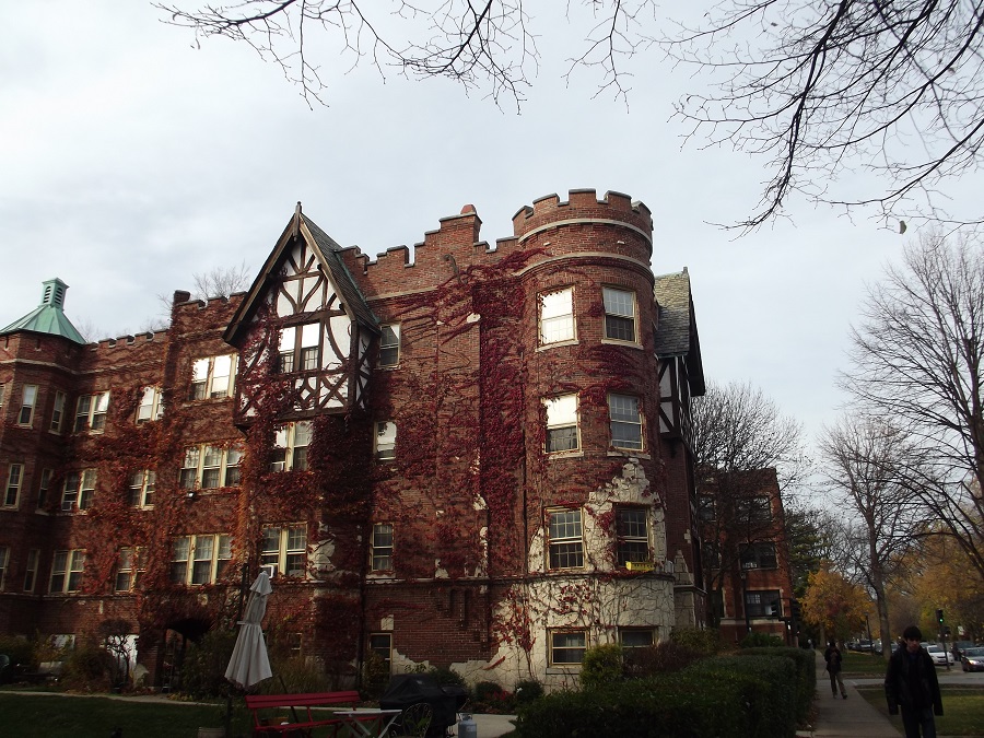 Purple ivy on "castle" condo just south of Noyes on Sherman -- Wednesday 11/5/14