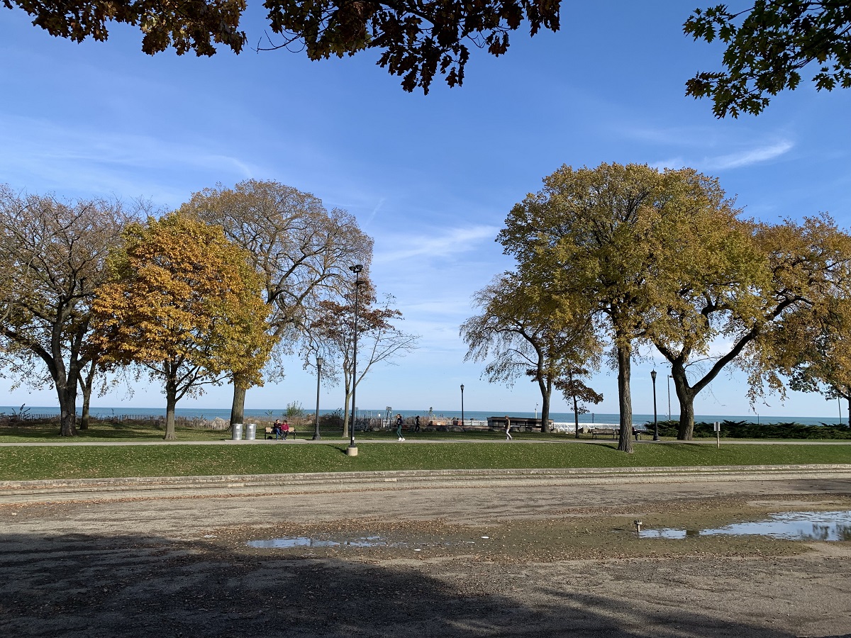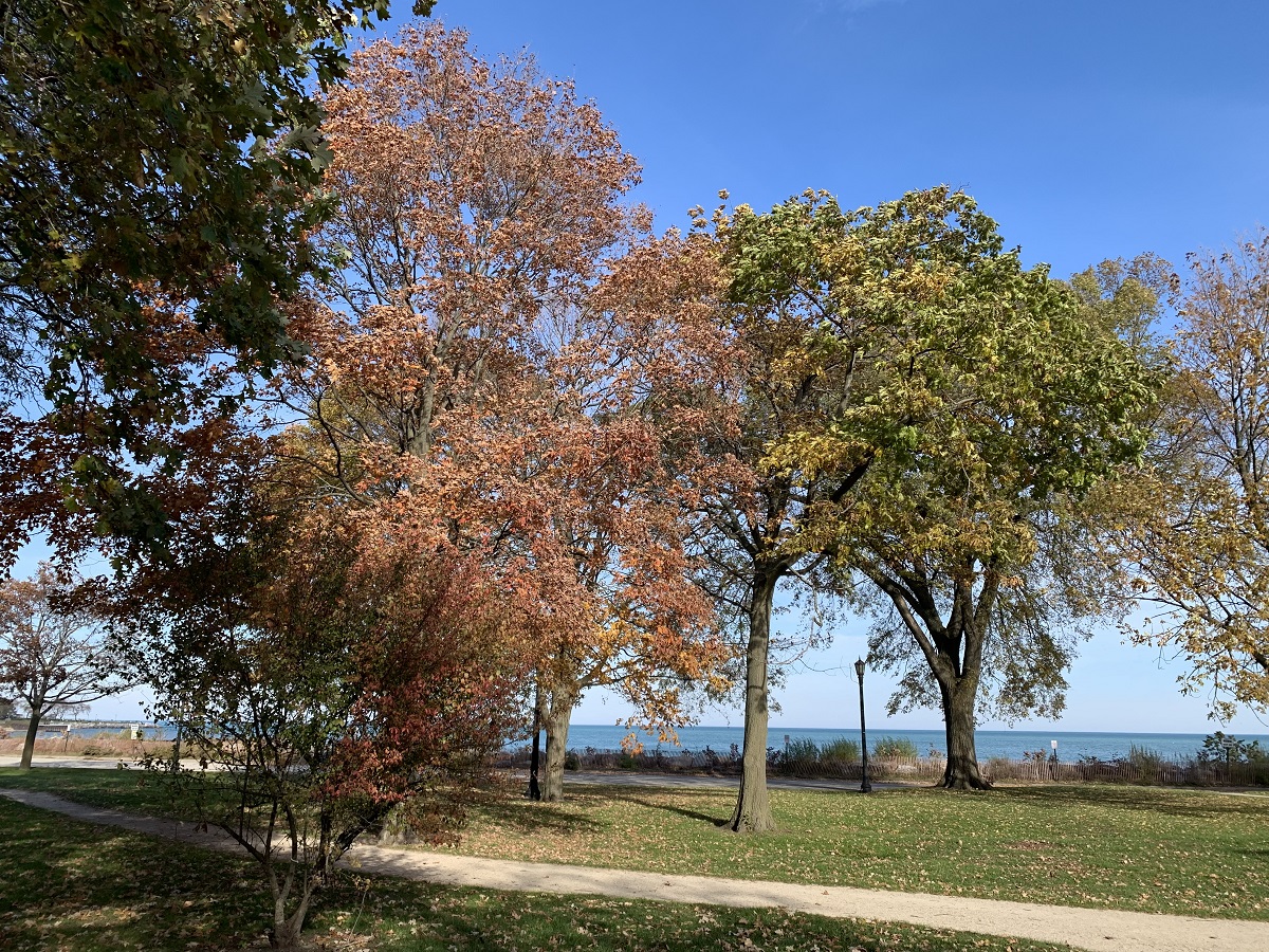 Trees looking north along Judson near the lake