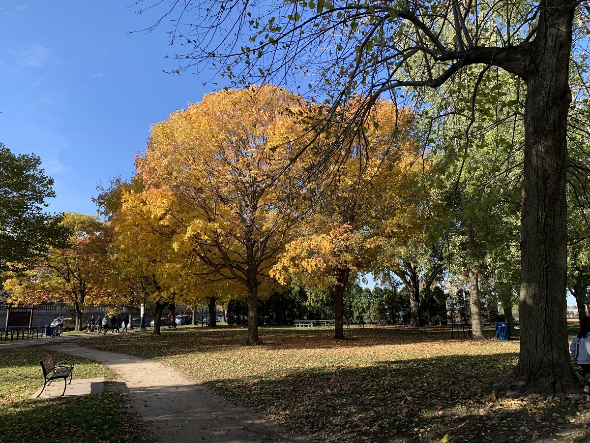 Yellow tree looking north from Elliott Park