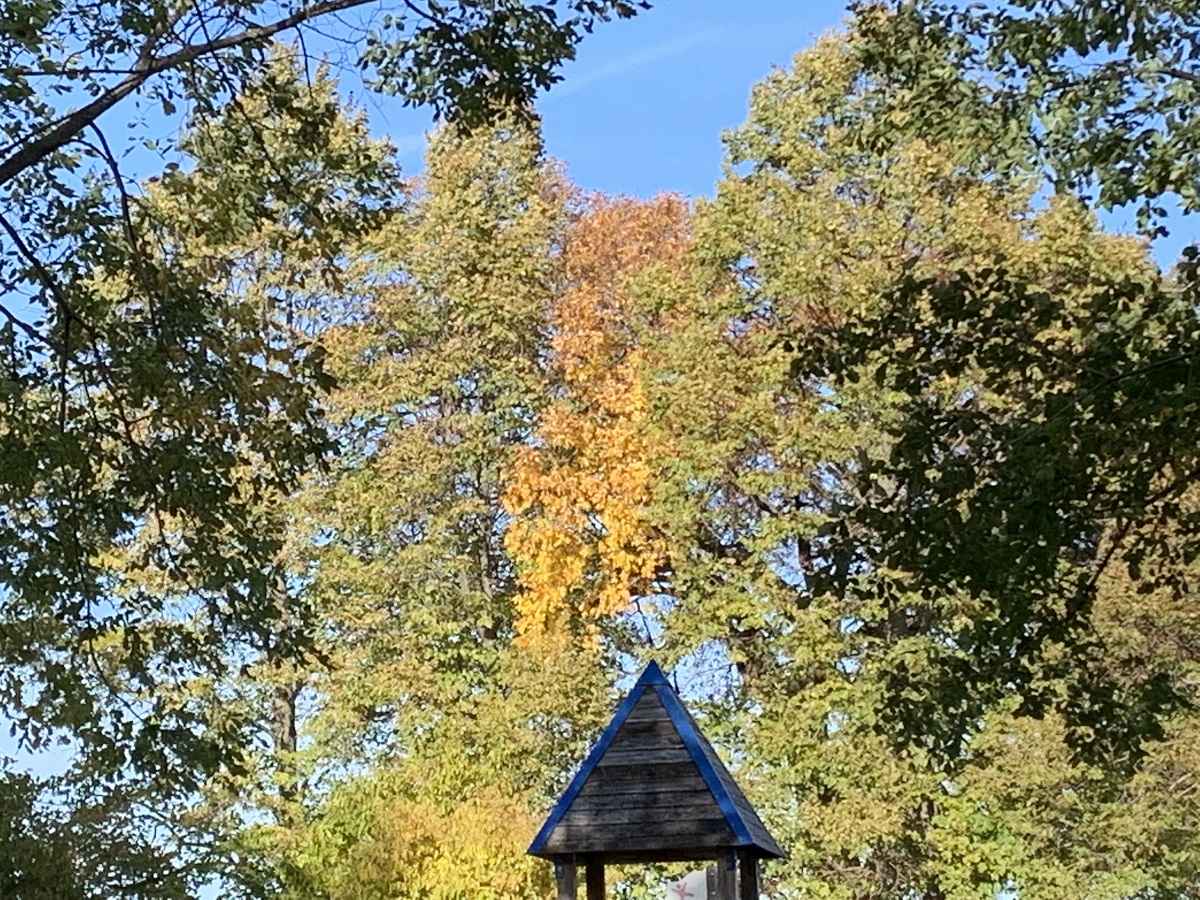 Yellow tree looking north over playground