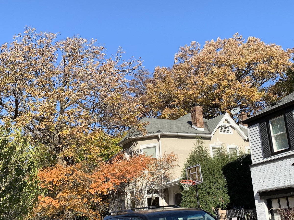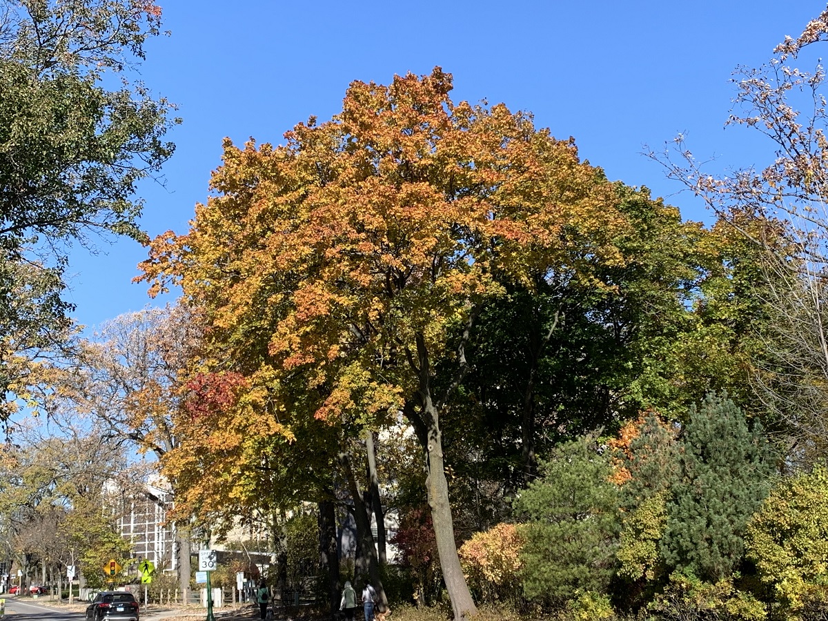 Purple and yellow trees on Sheridan in Wilmette