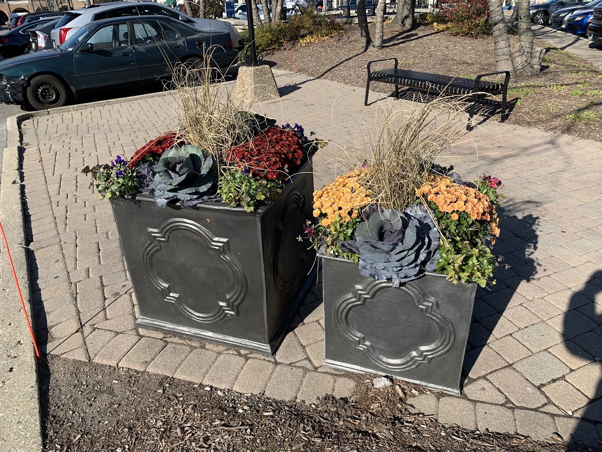 Flower pots in Plaza de Lago, Wilmette