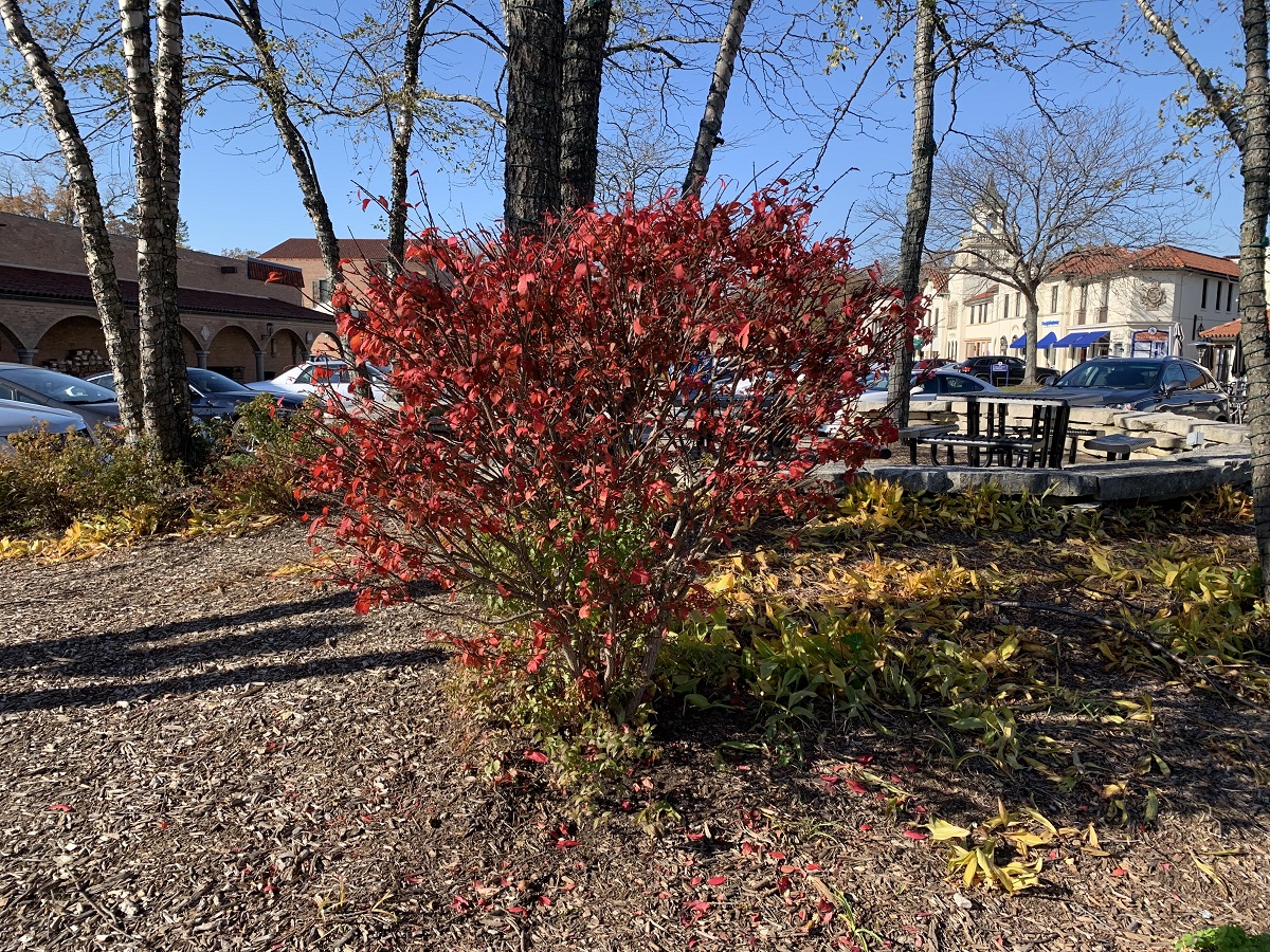 Red bush in Plaza de Lago, Wilmette