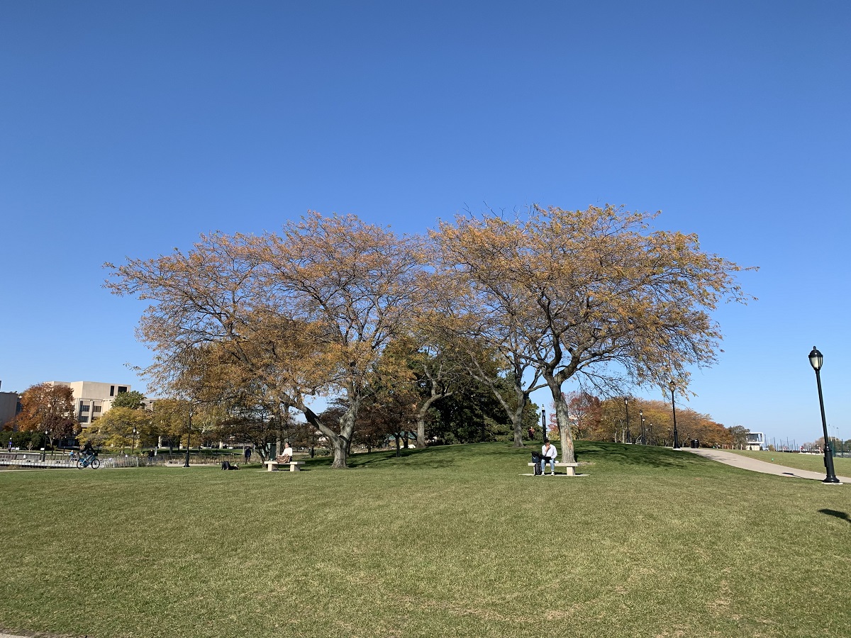 Yellow trees on Sheridan in Wilmette