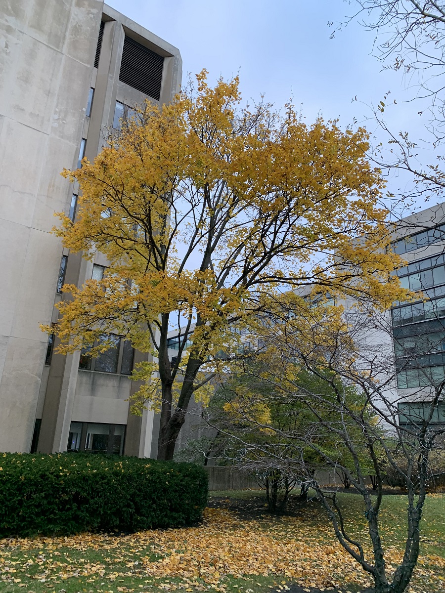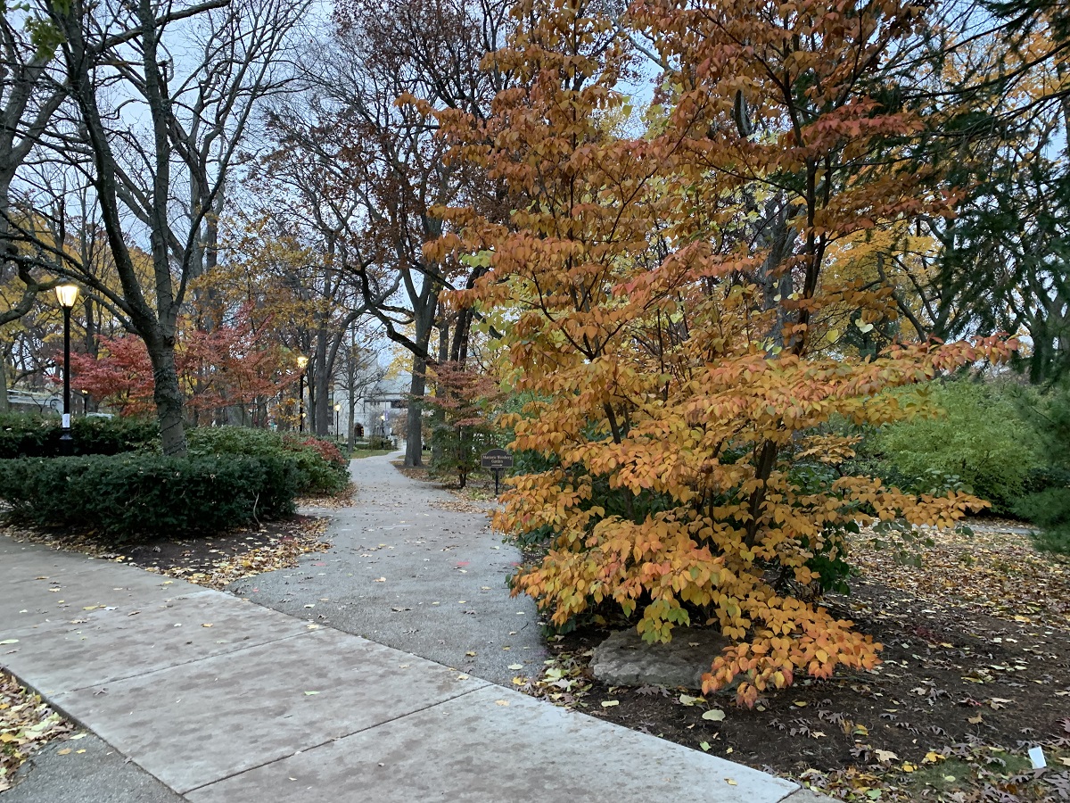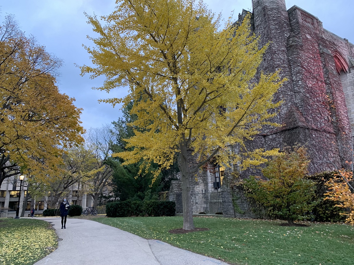 Dark yellow trees looking south at University Hall