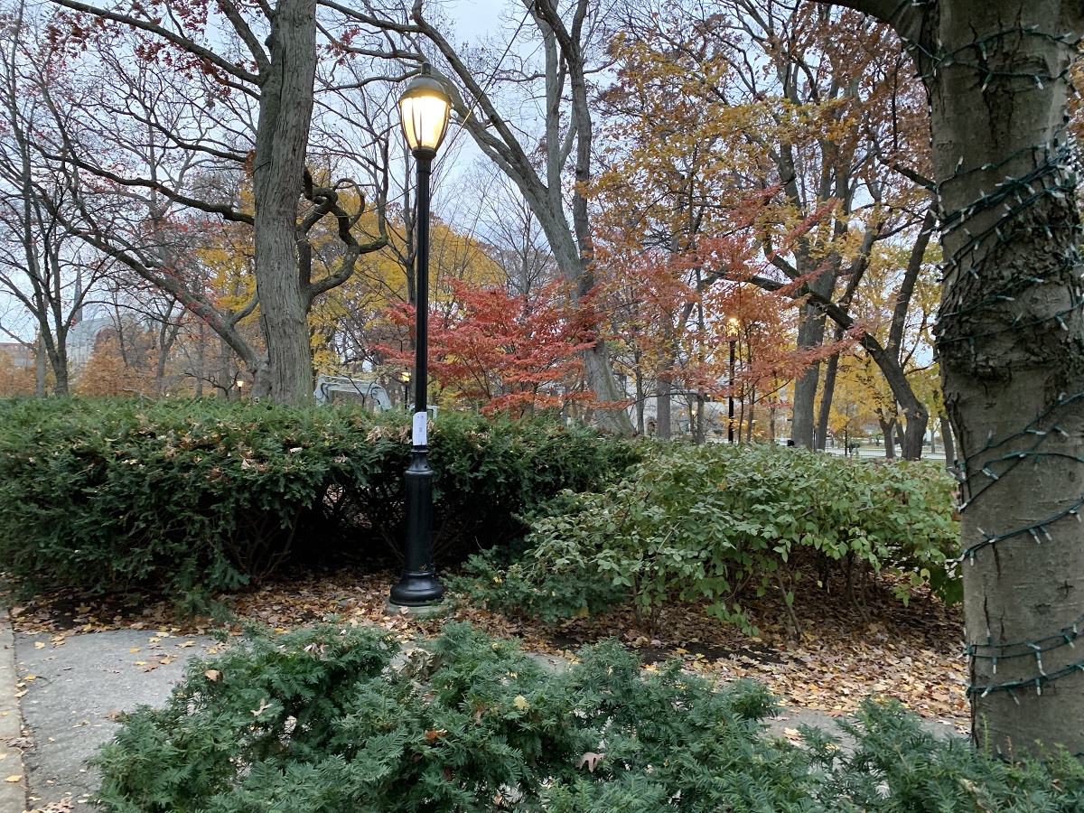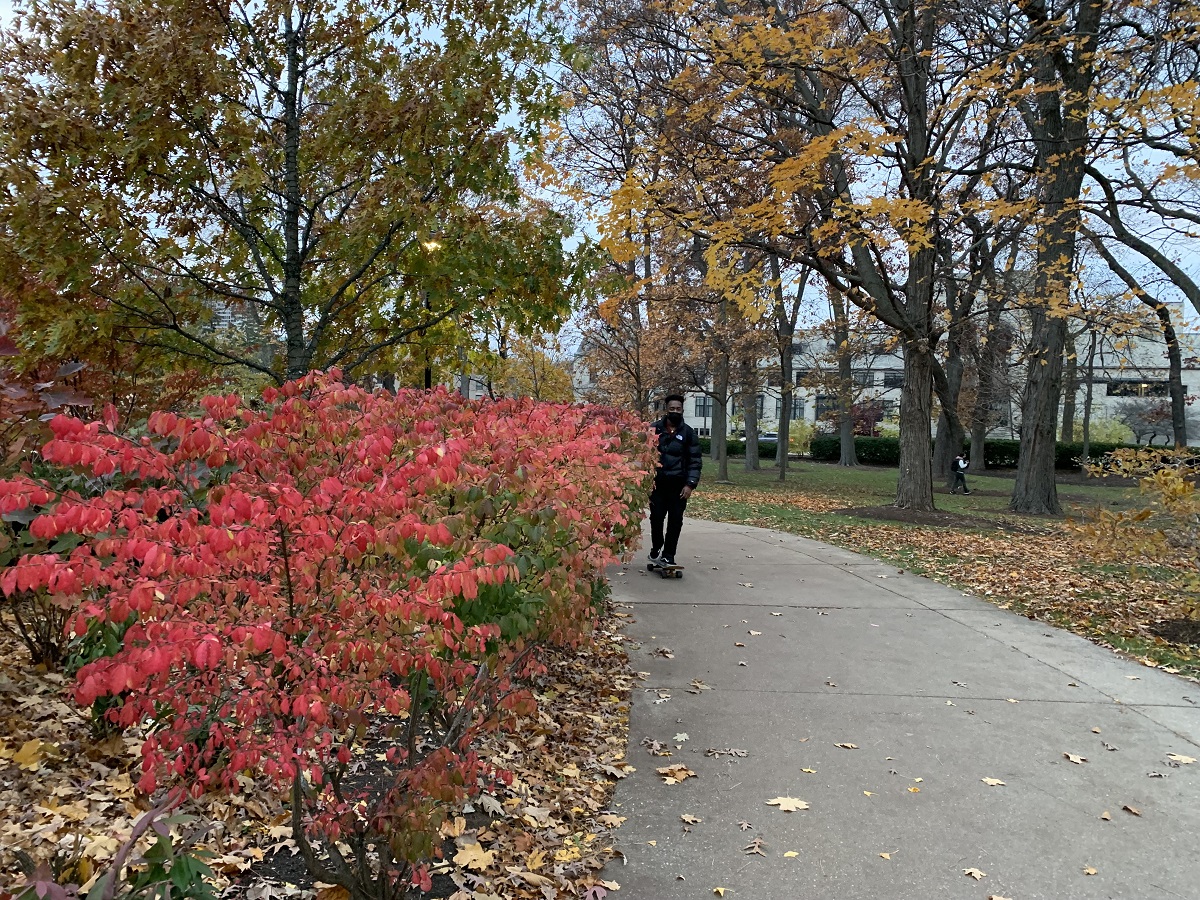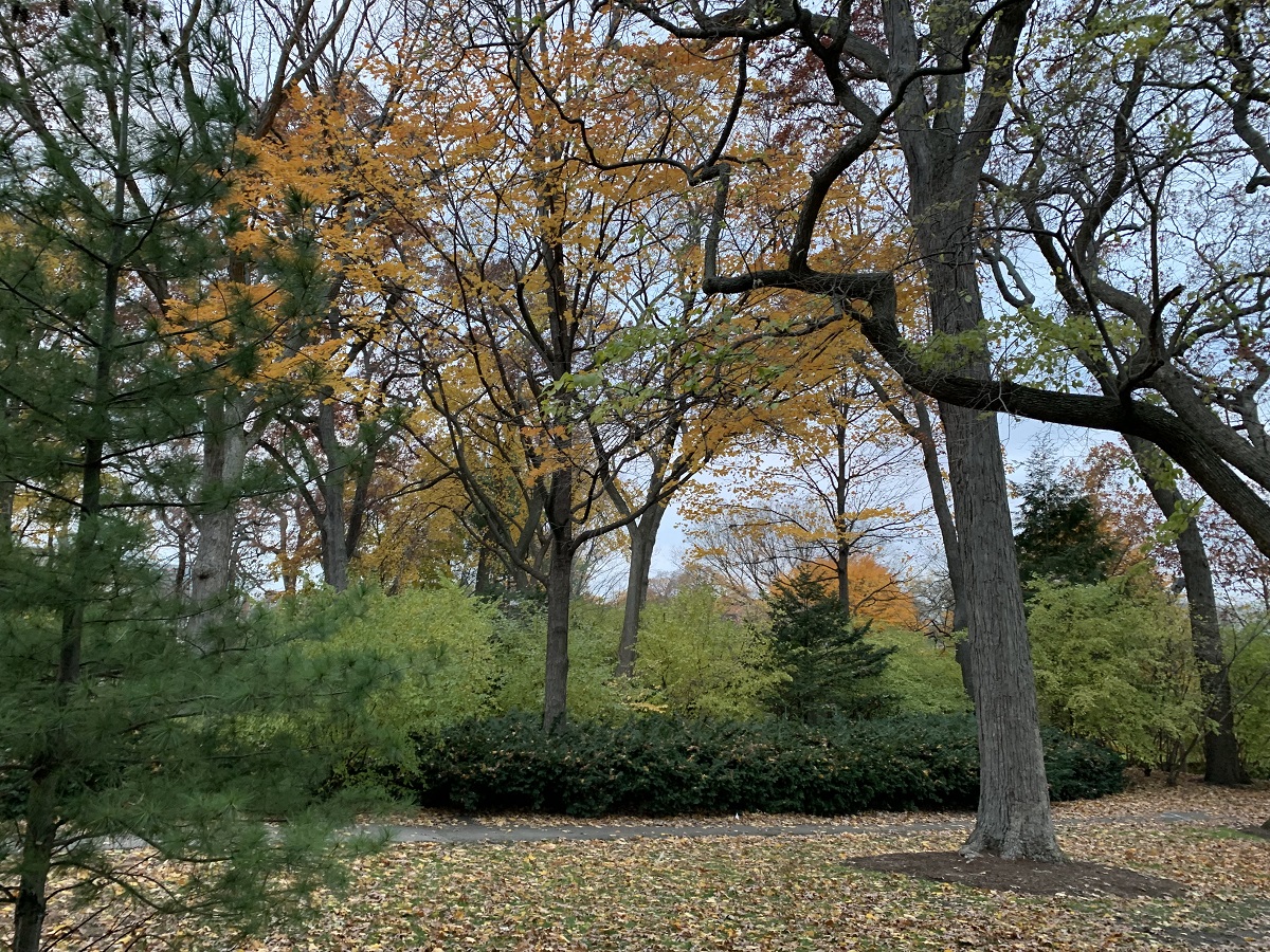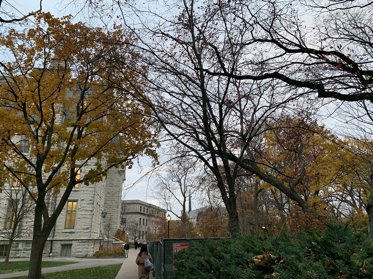 Dark yellow trees looking south at University Hall