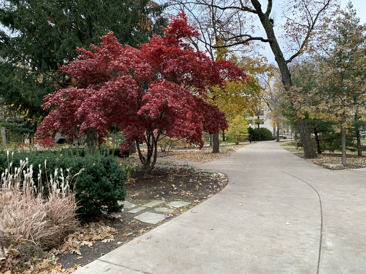 Two brilliant red bushes on Orrington Avenue (out of Northwestern campus)