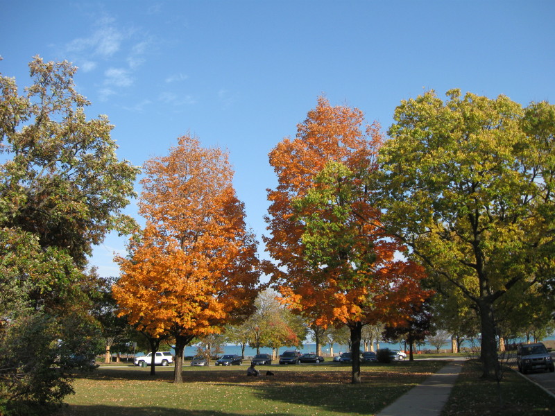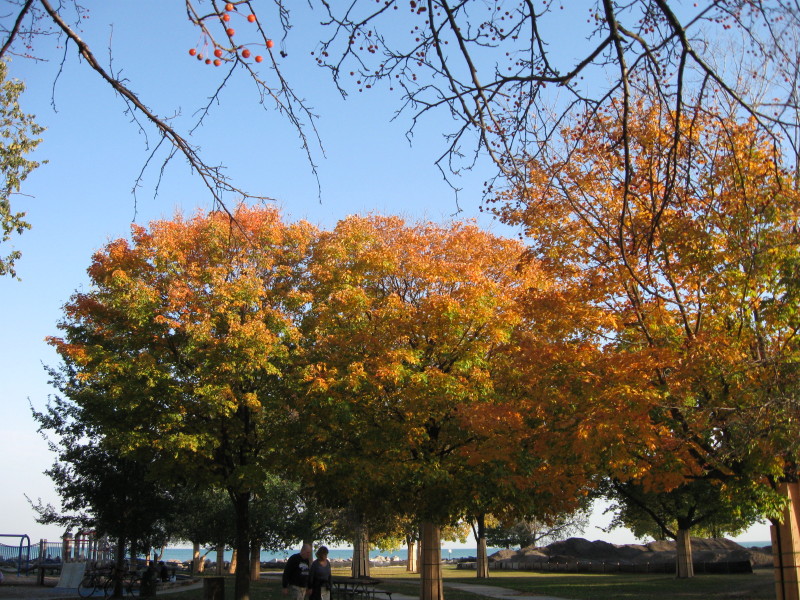 Fall Colors plus Artistic Sand Castle from Andy jogging Evanston lakefront 10/16/10