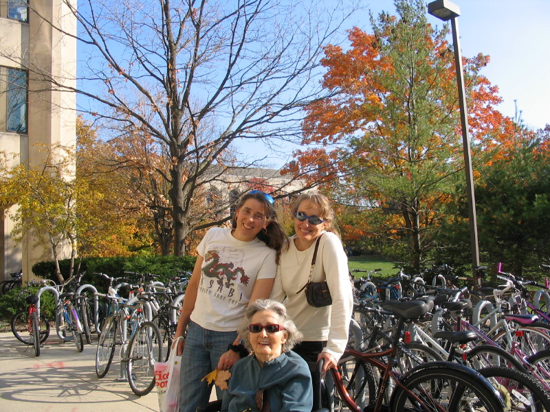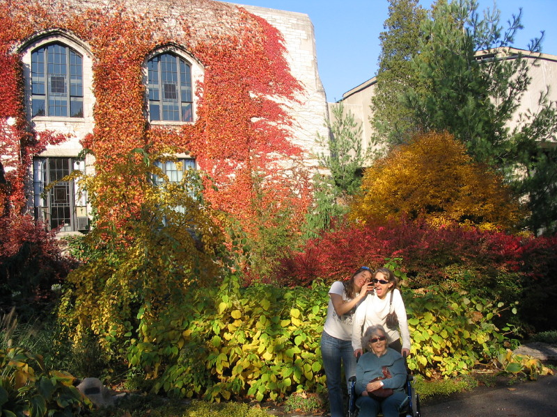 Looking at fish, ducks in front of georgous Maple by NU lagoon