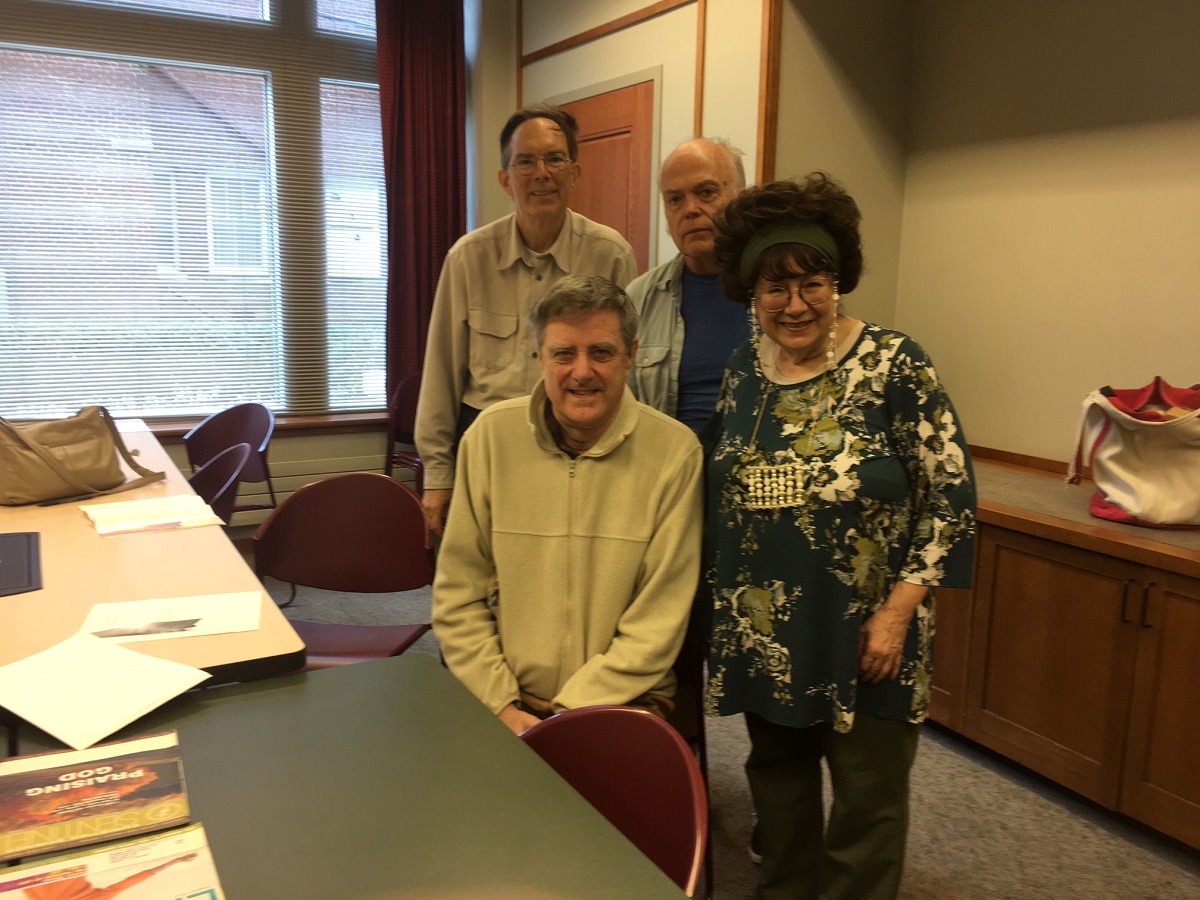 Andy, Lewis, Larry and Marsha at Christian Science discussion at Evanston Library