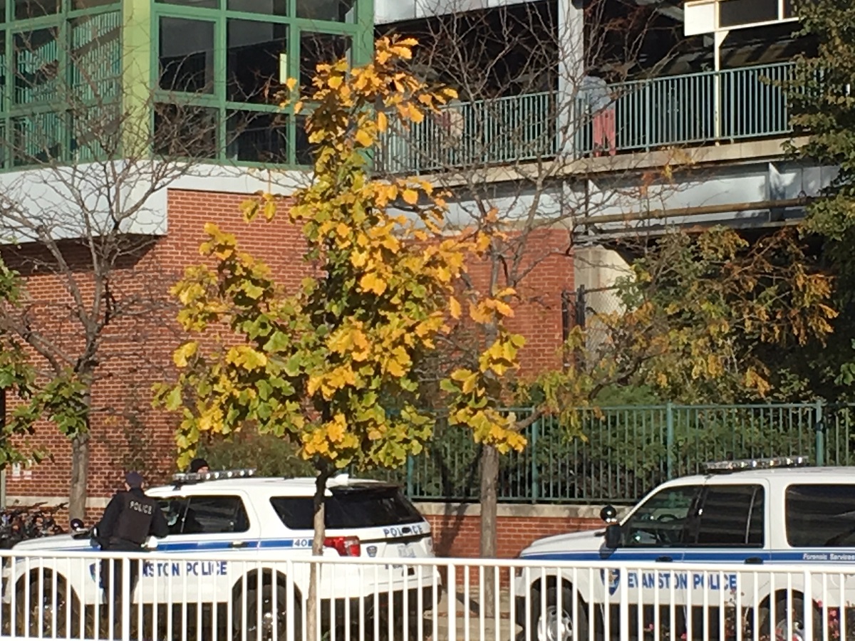Yellow tree by CTA statiion between Davis and Church streets