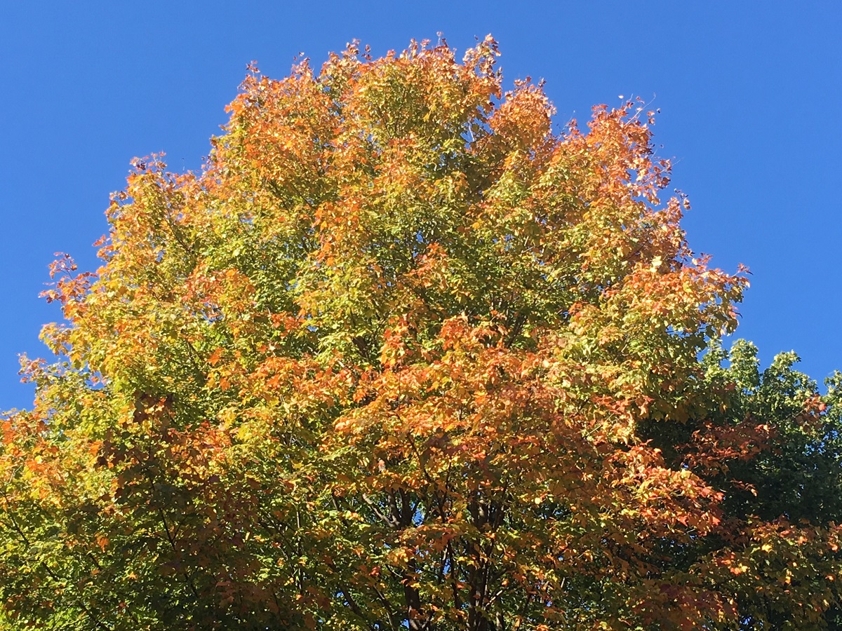 Beautiful orange yellow maple tree on Ridge between Lake and Greenwood