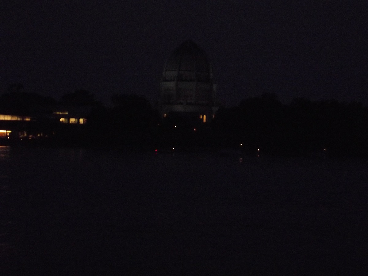 Baha'i Temple with floodlights much later after we left the harbor