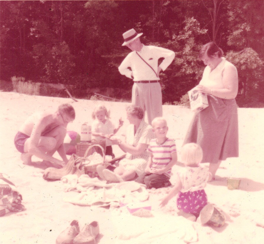 Dad, Carol, Grandmother Katherine, Grandfather, Andy, friend, Dorothy -- 1957