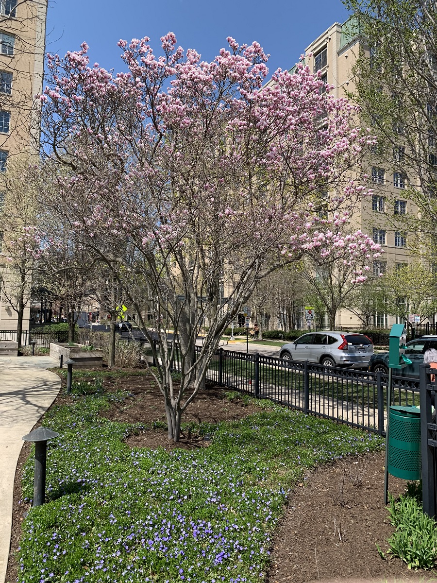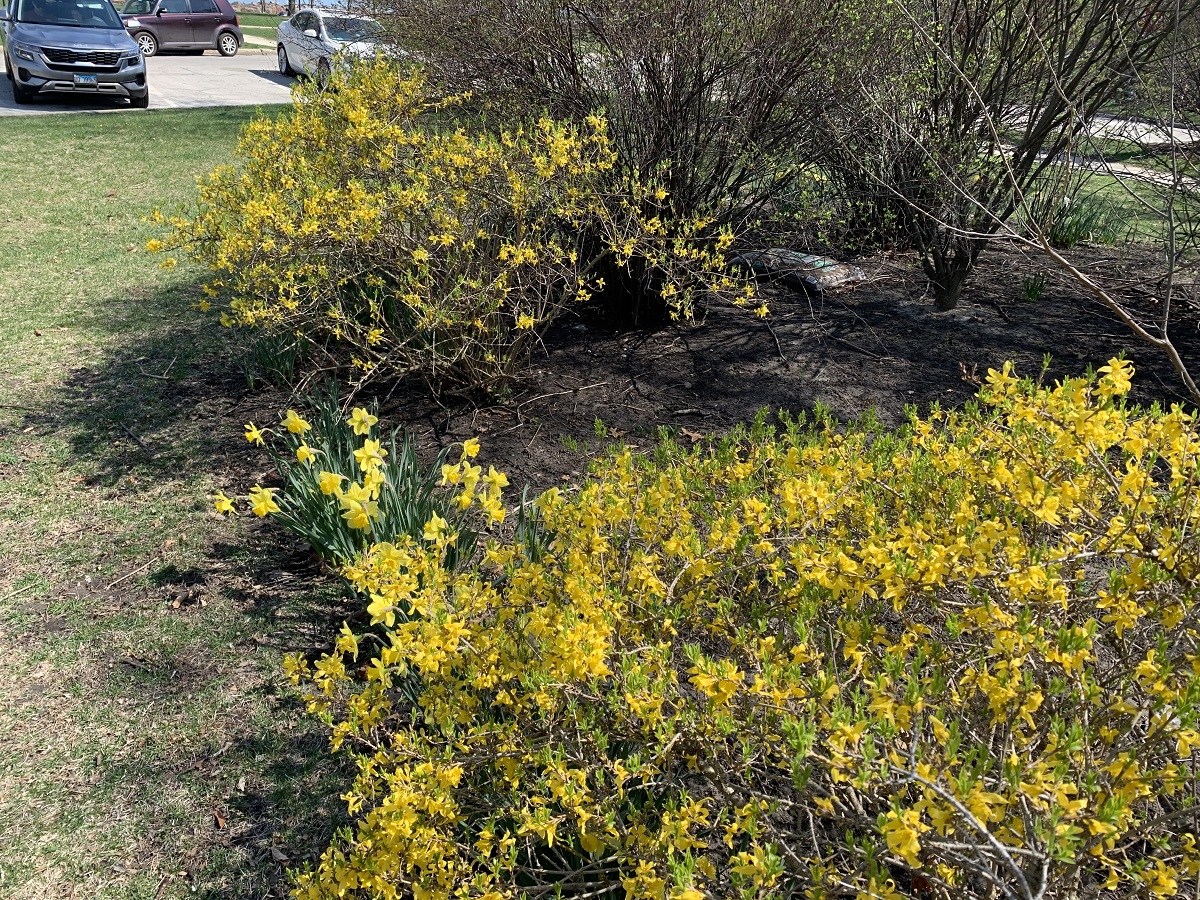 Forsythia and daffodyls on Davis St. in Patriots Park