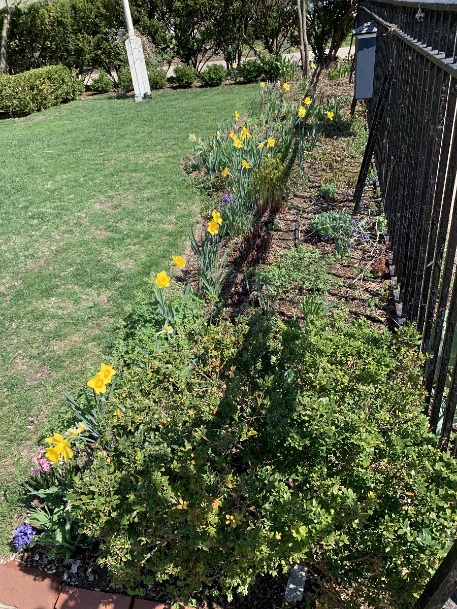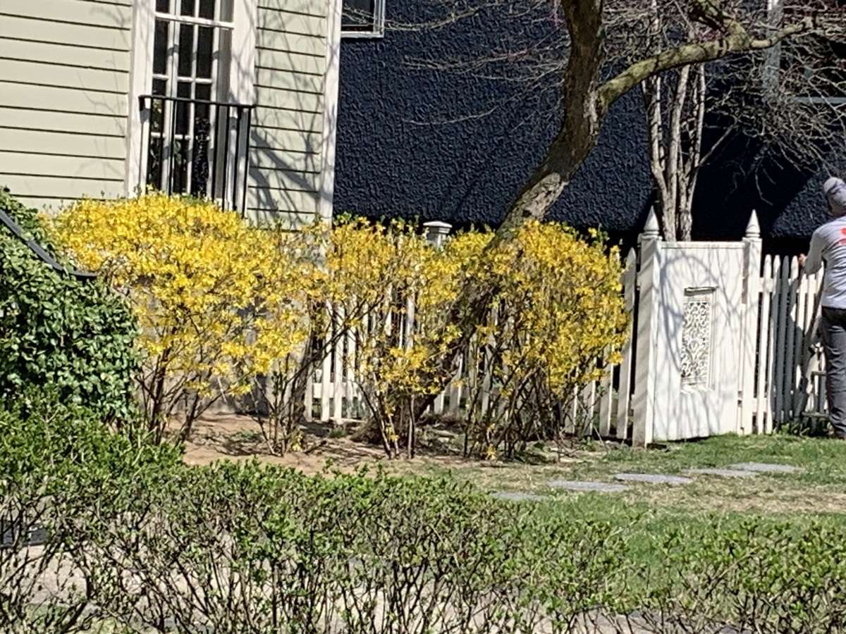 Forsythia and daffodyls on Davis St. in Patriots Park.