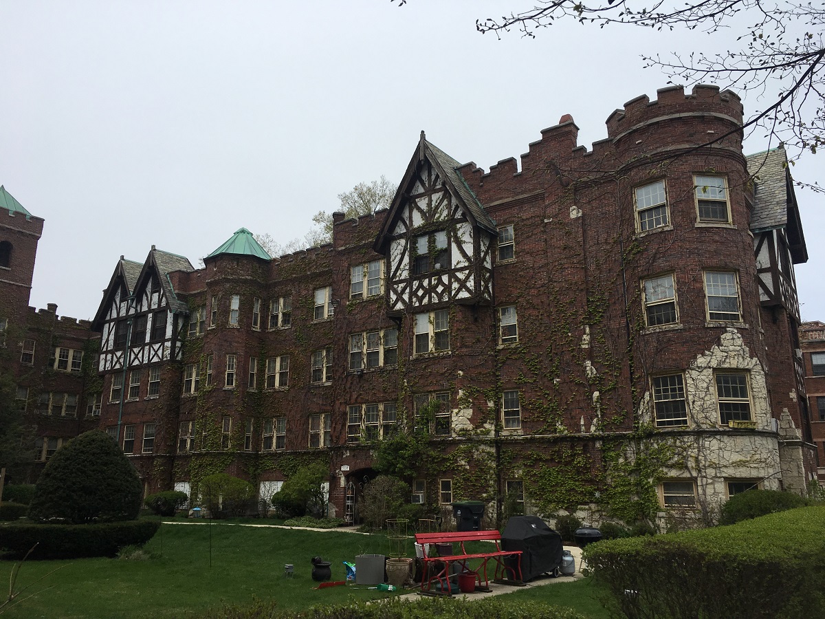 "Castle" building at Sherman and Noyes -- SW corner