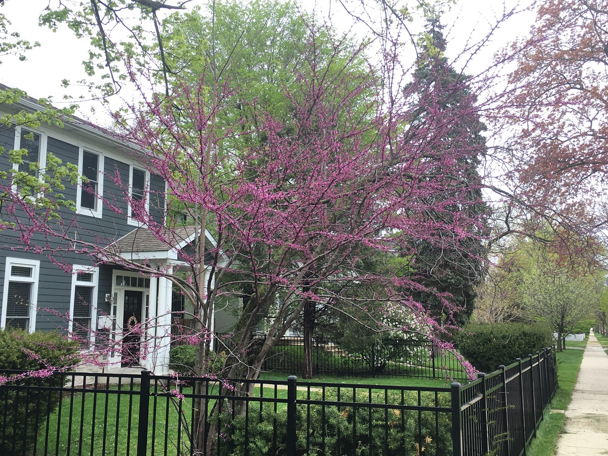 Redbud trees on Lake Ave., Wilmette, just east of Ridge -- 5/4/19