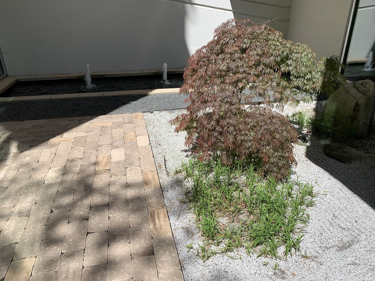 Zen garden at Optima with fine brown maple