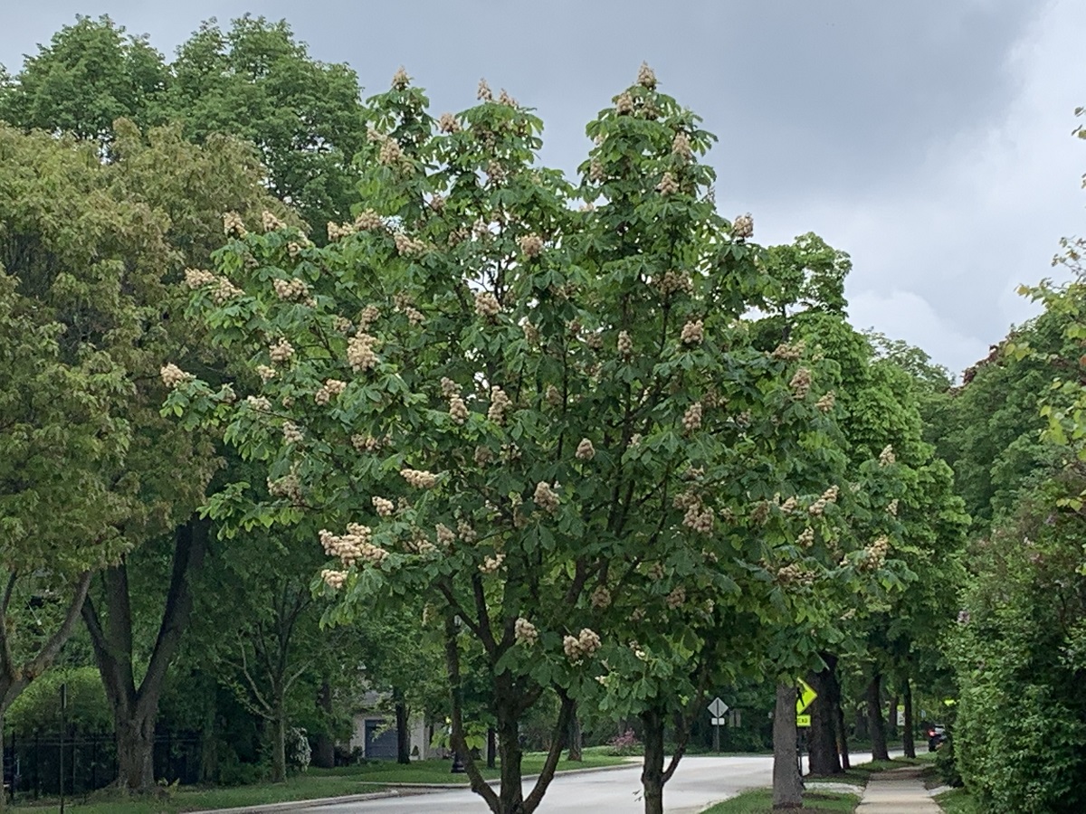 Chestnut tree with white speared flowers in Wilmette