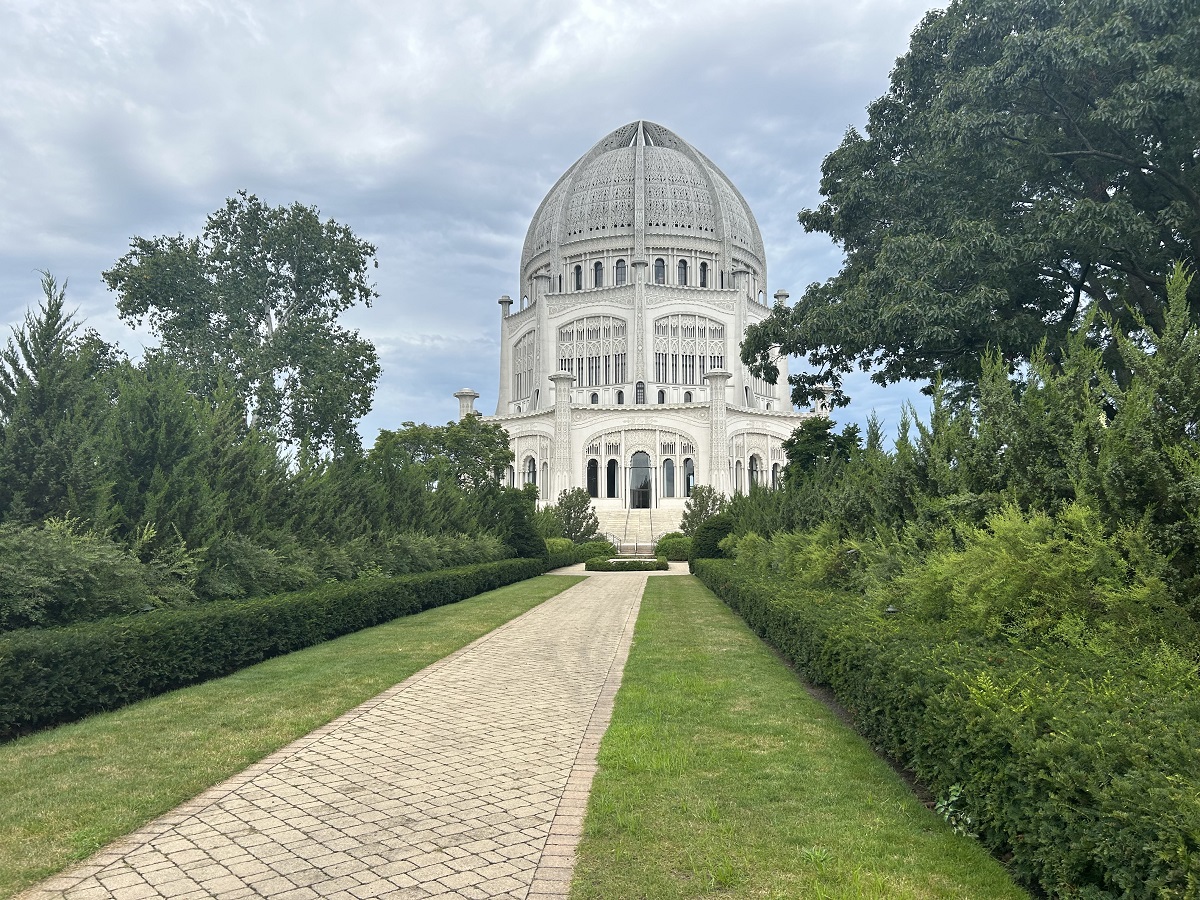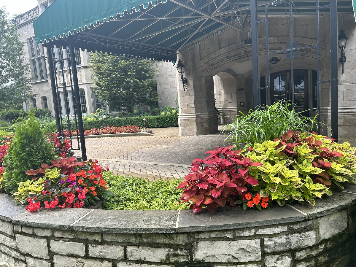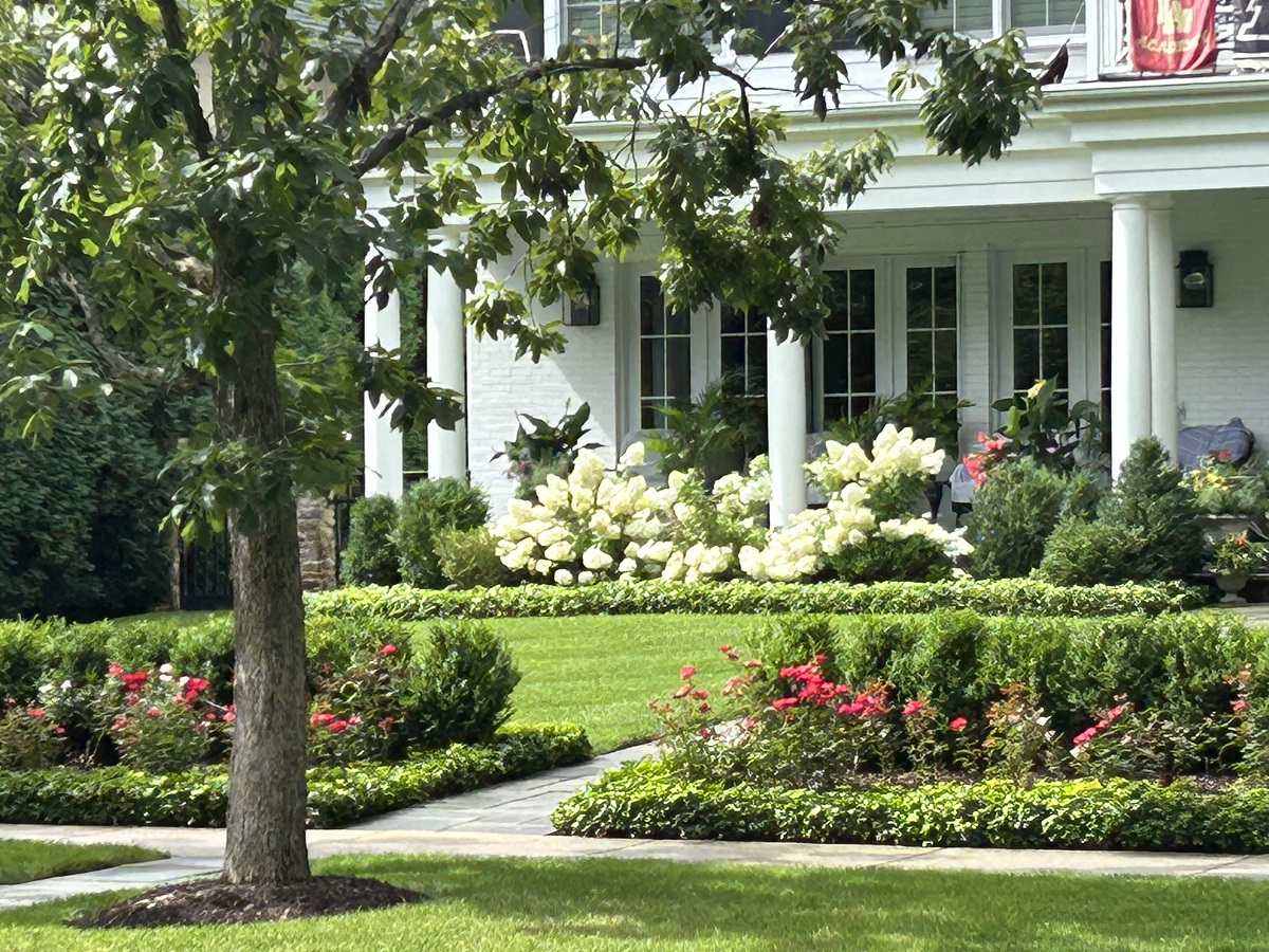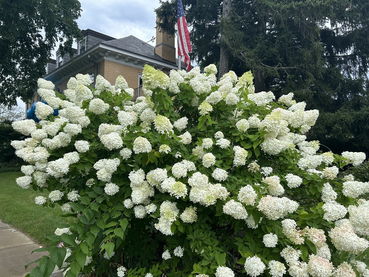White flowers and red roses accross Michigan Ave. west of Gilson Park