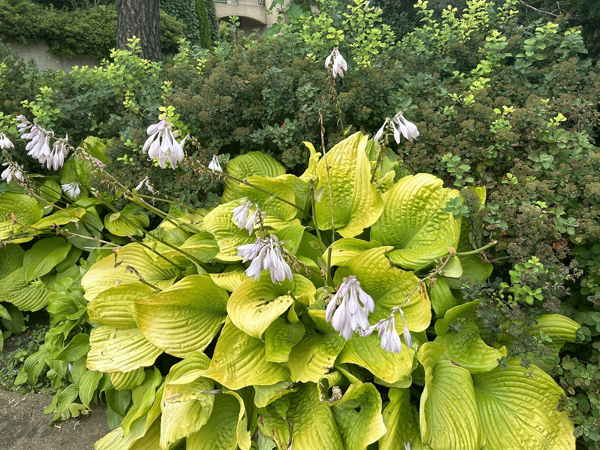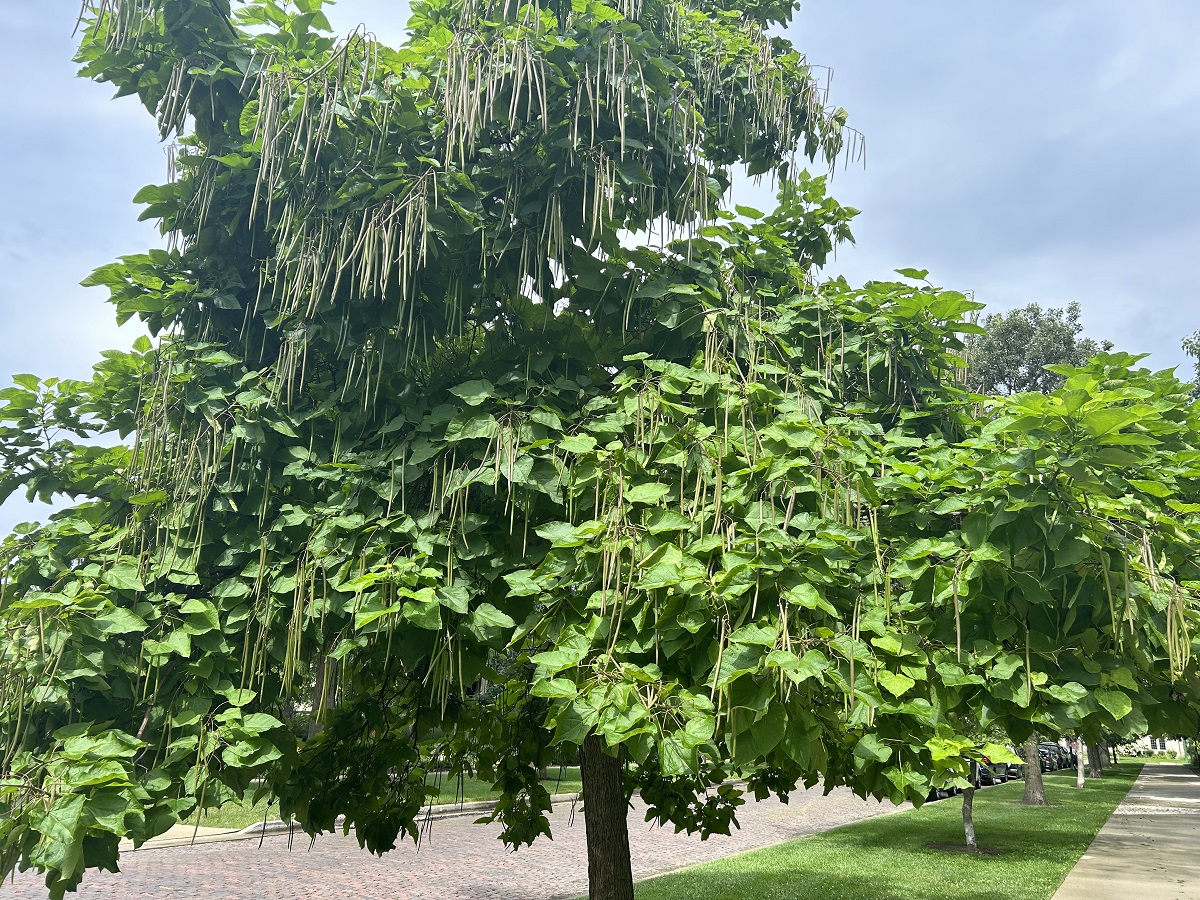 Wide leaves with beautiful purple flowers on Michigan Ave.