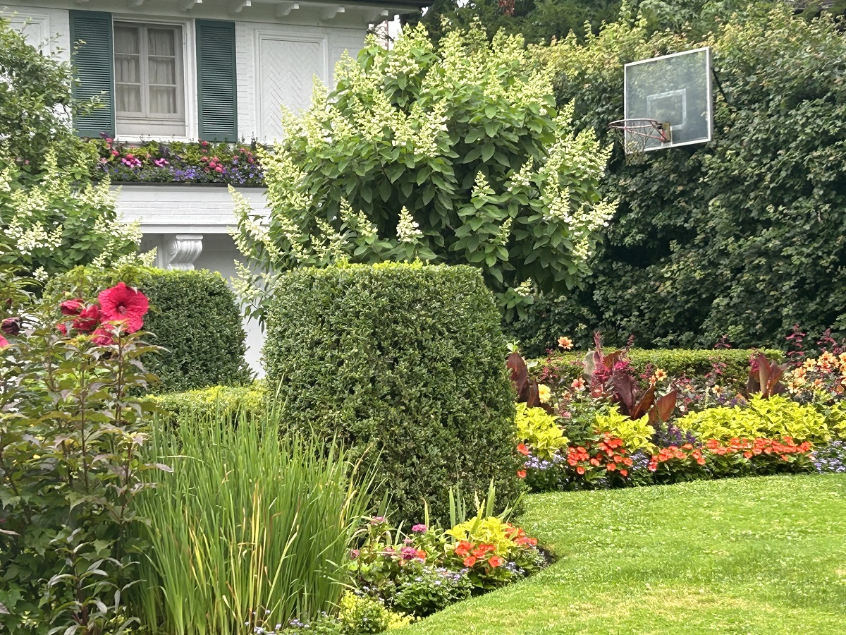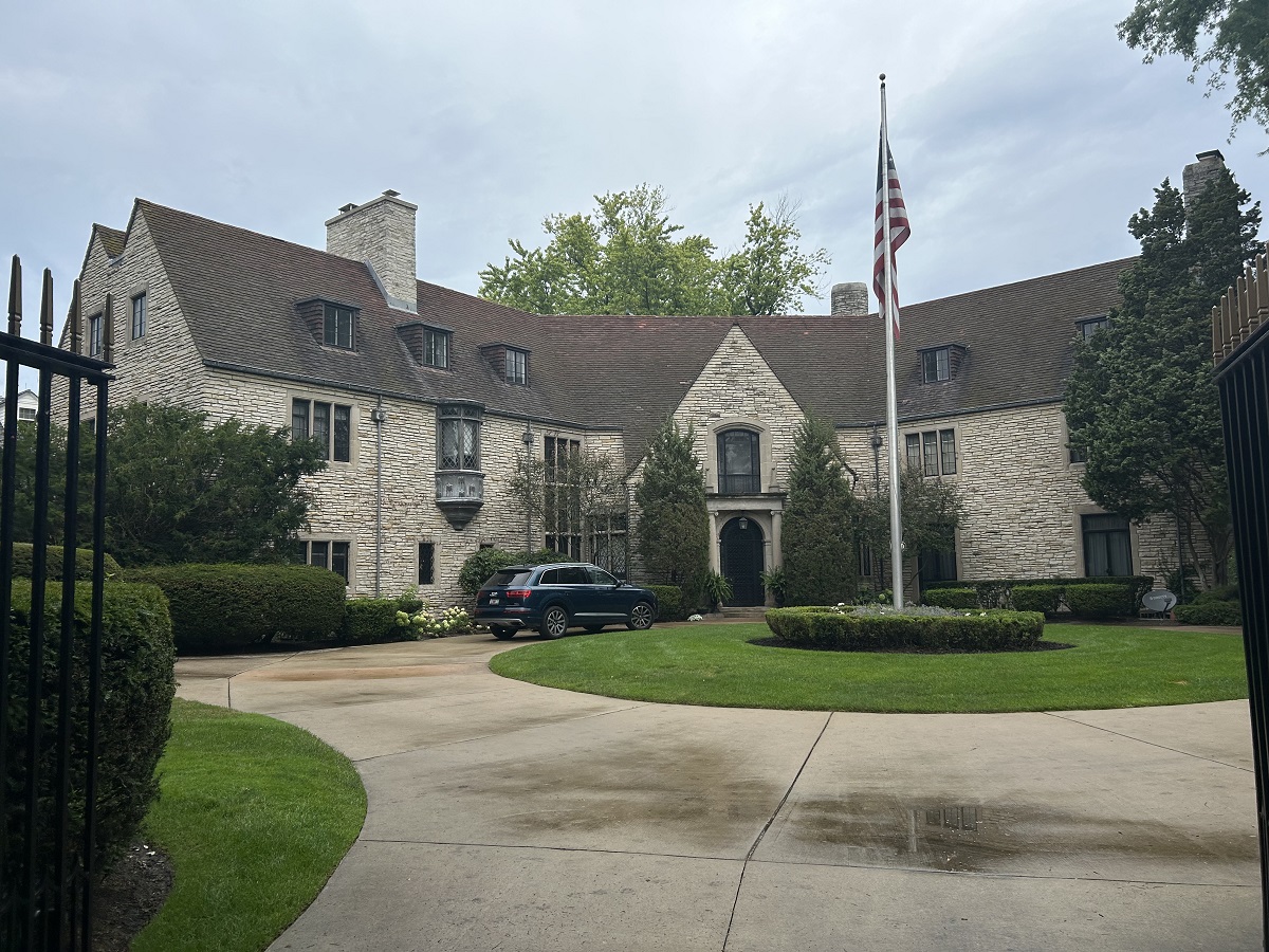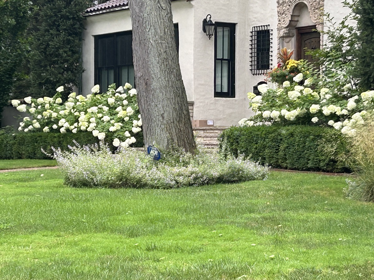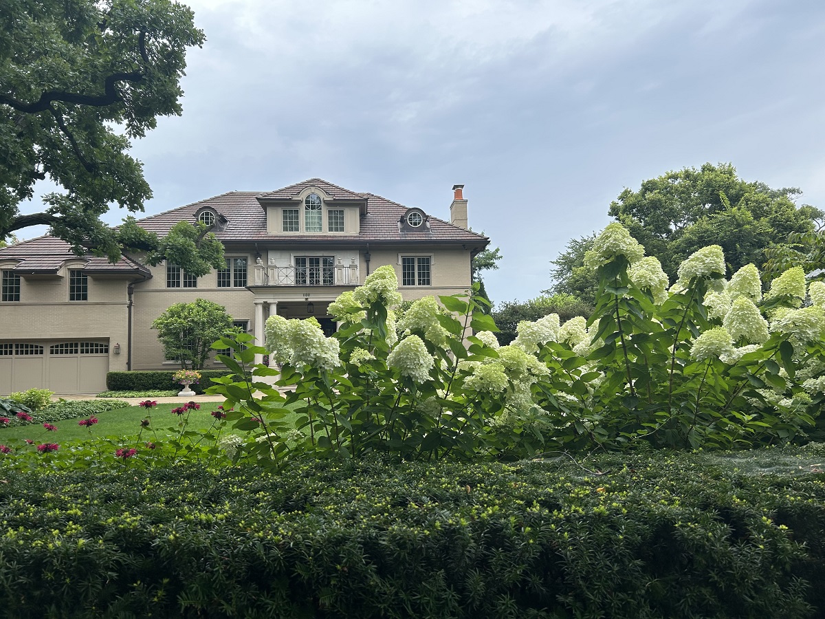 Large mansion with white flowers on Michigan Ave.