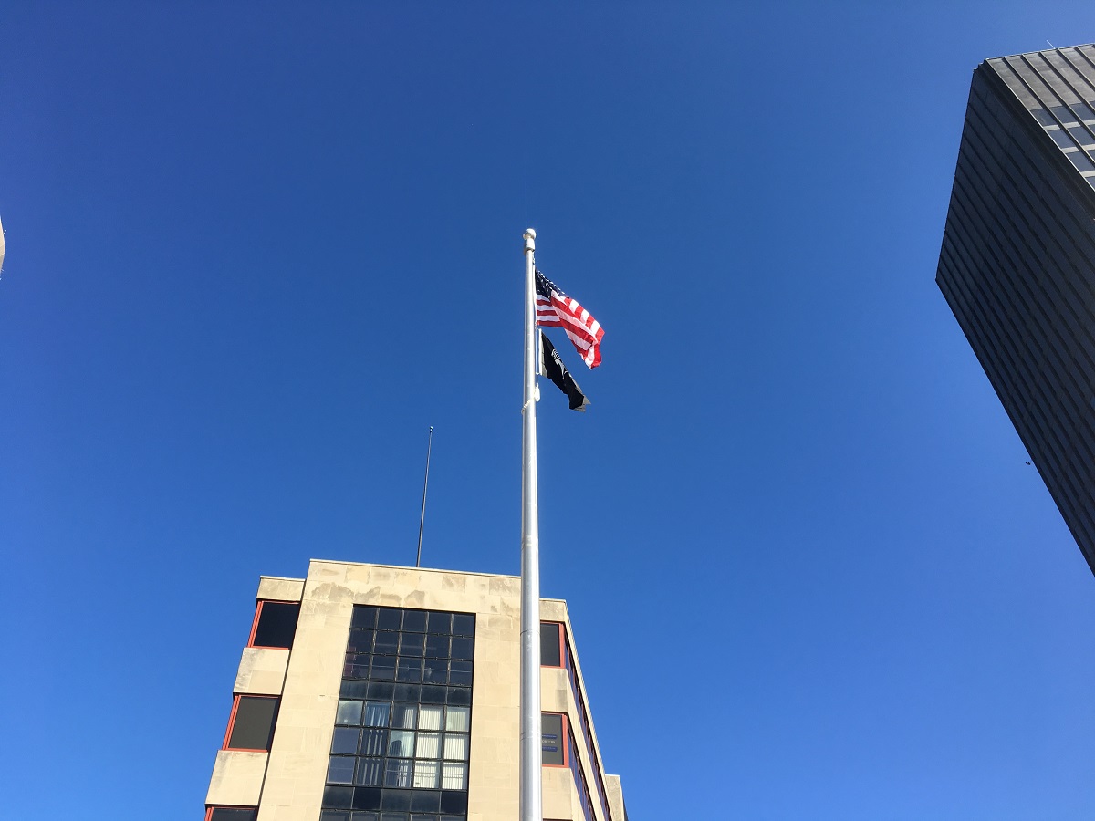 Flags raised for the first time at Fountain Square