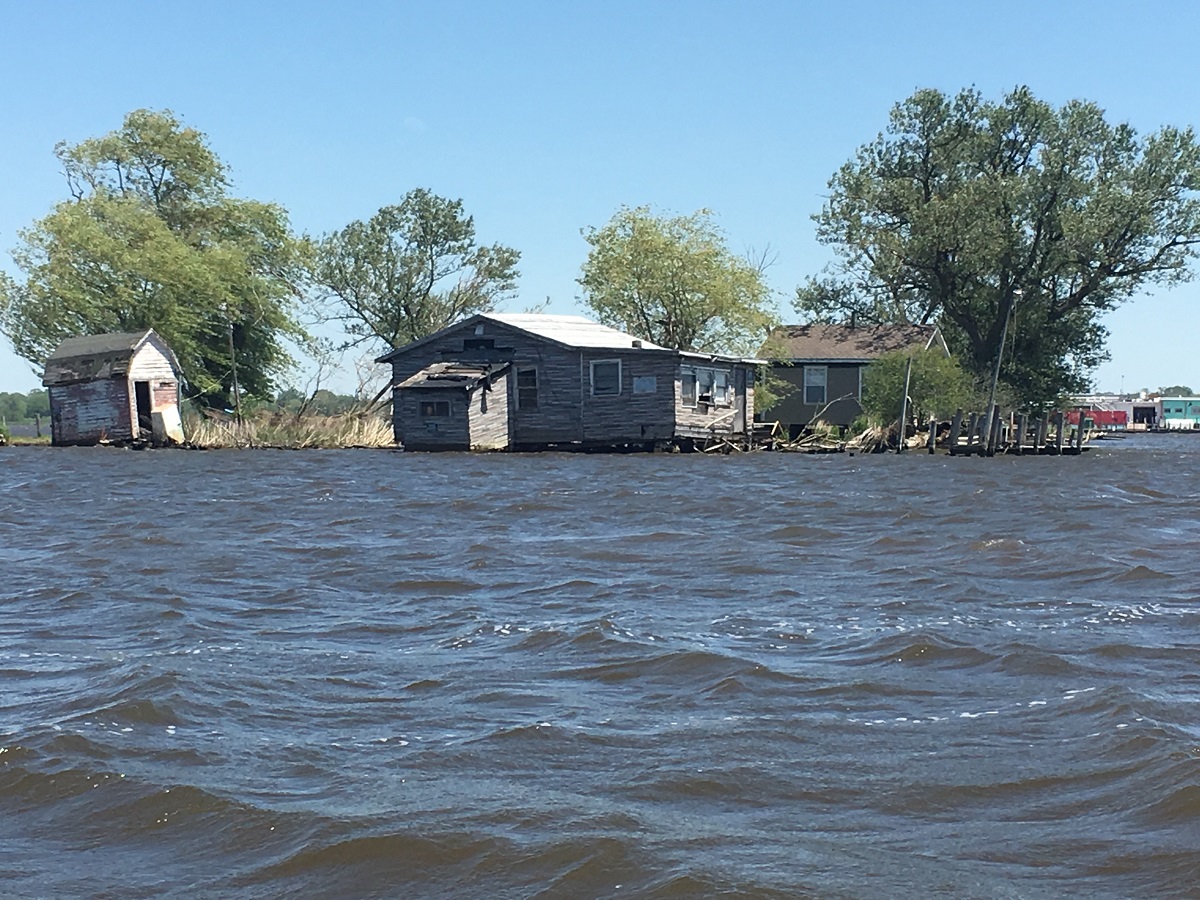 Old tumble-down shacks on island