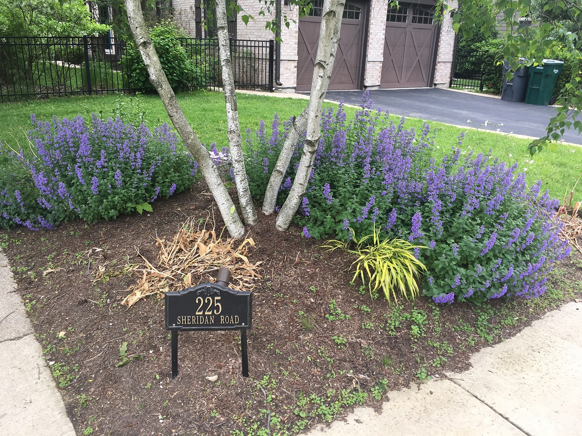 Blue flowers on Sheridan Road in Wilmette