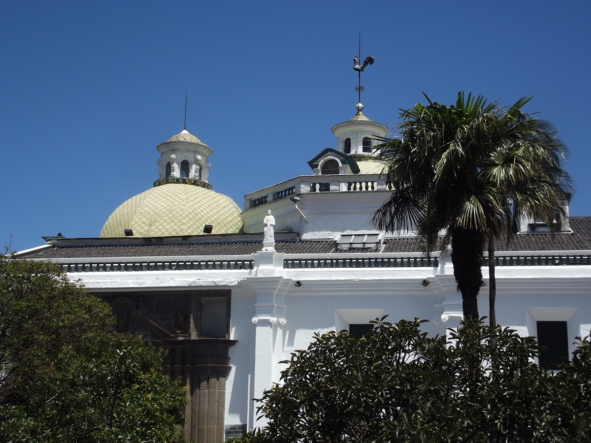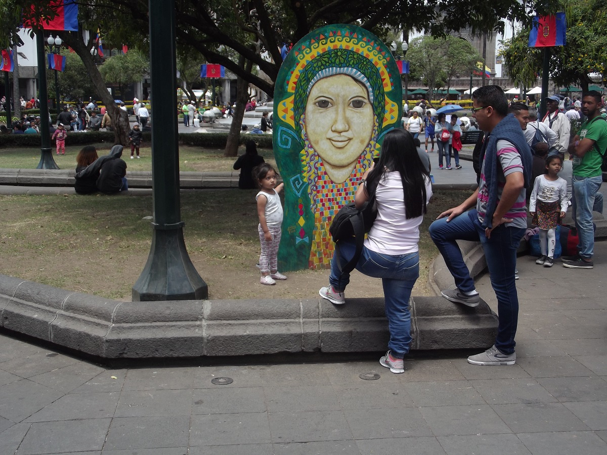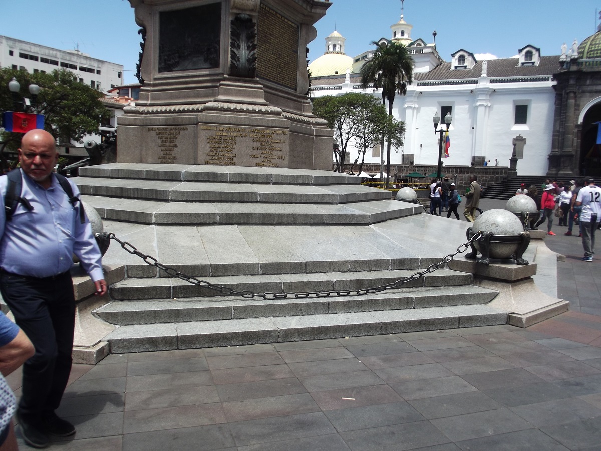 Statue center of square in old Quito, Ecuador -- August 12, 2019