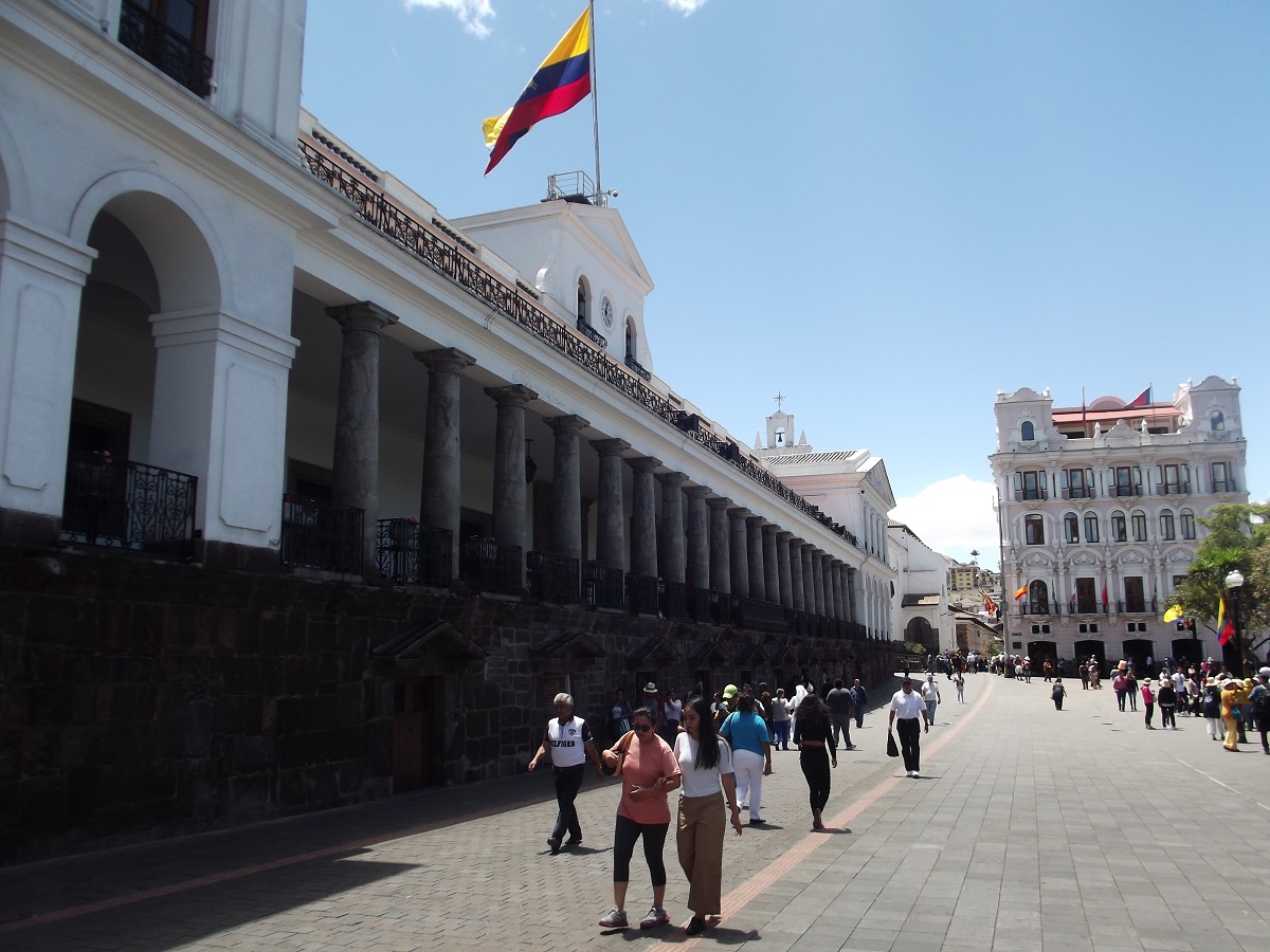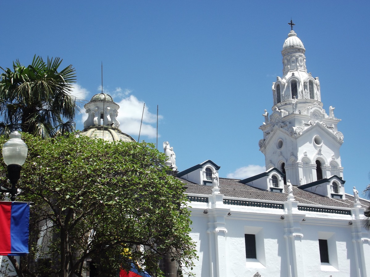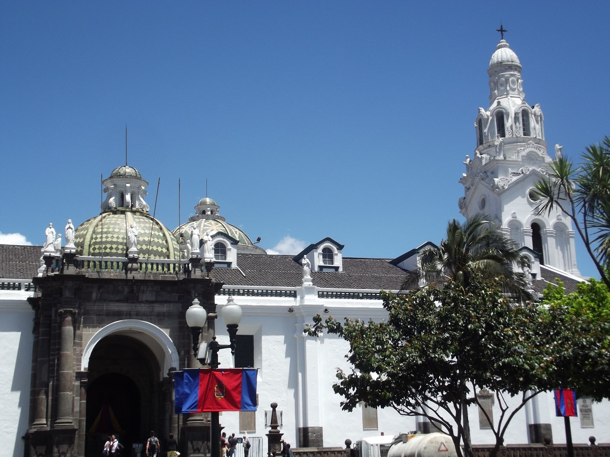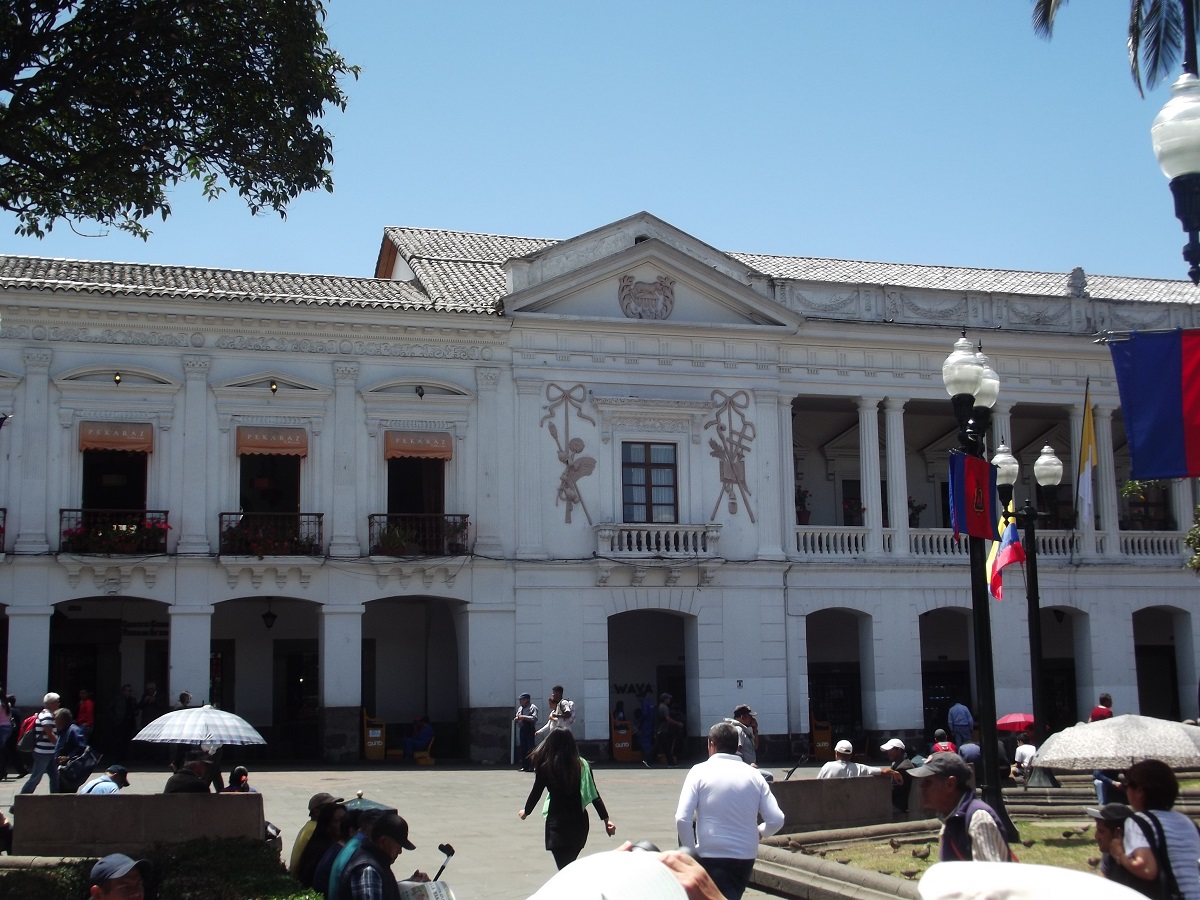 Statue center of square in old Quito, Ecuador -- August 12, 2019