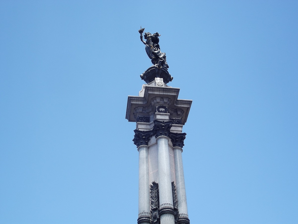 High statue in center of square